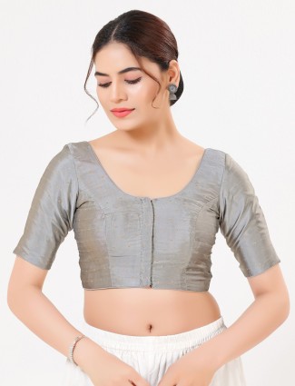Grey Tafeta Silk Saree Style Blouse