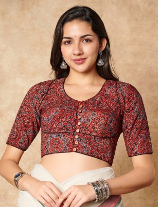 Maroon Hand Block Printed Ready Made Blouse In Ajrakh Cotton