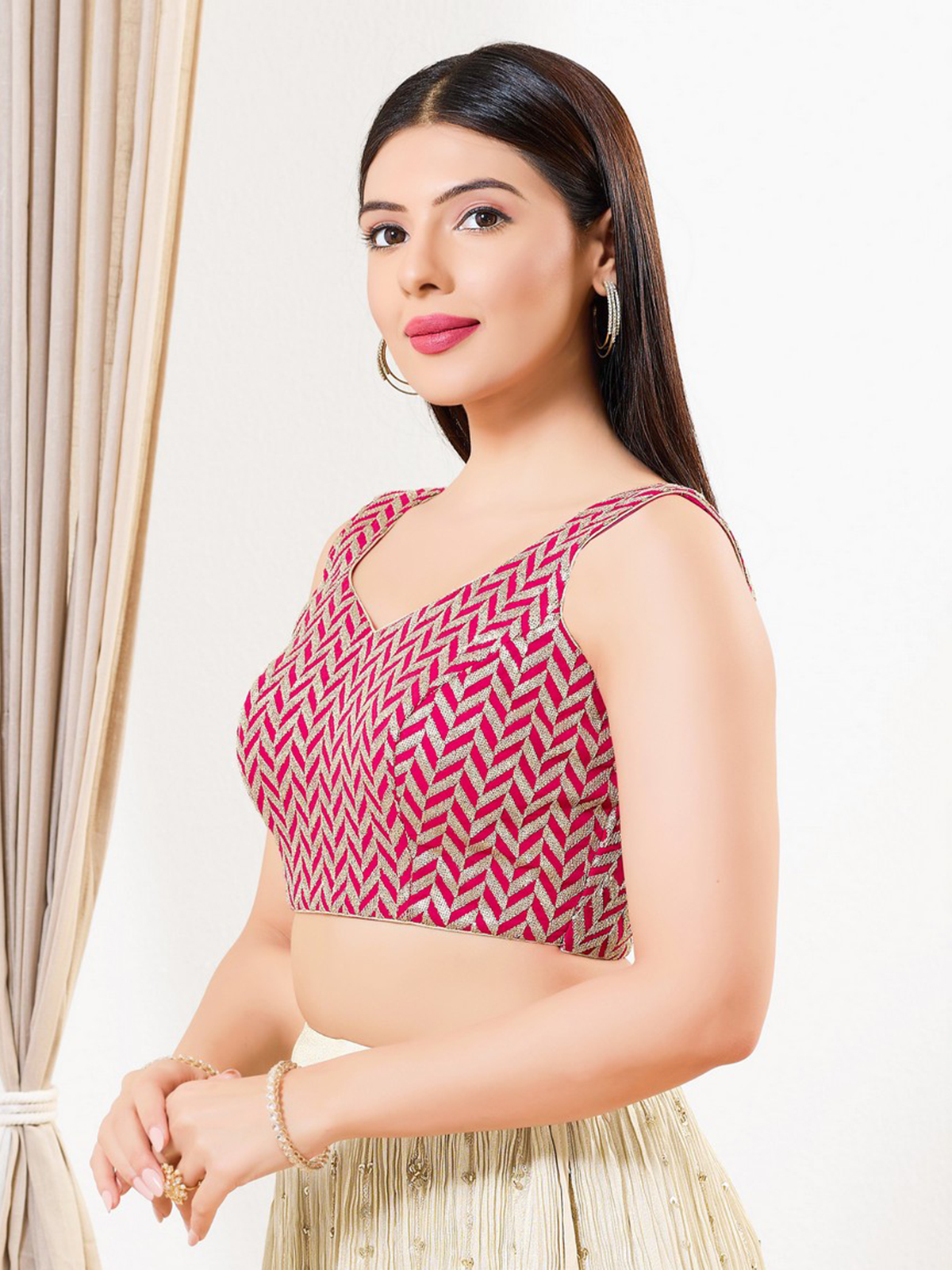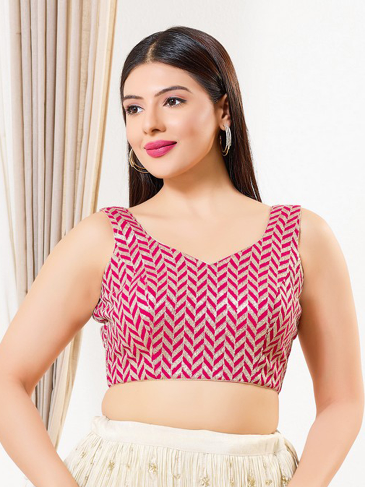Pink Silk Sleeveless Sequins Festive Blouse