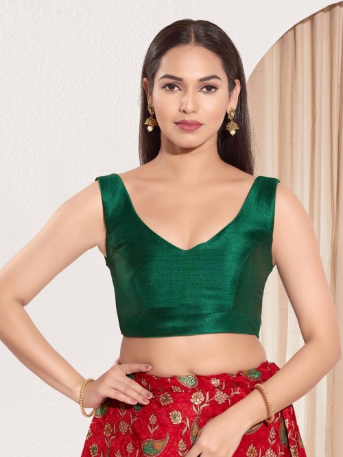 Ready Made Silk Blouse In Bottle Green