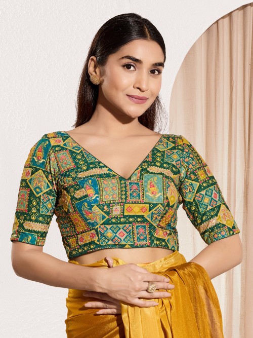 Viscose Rayon Ready Made Blouse In Bottle Green