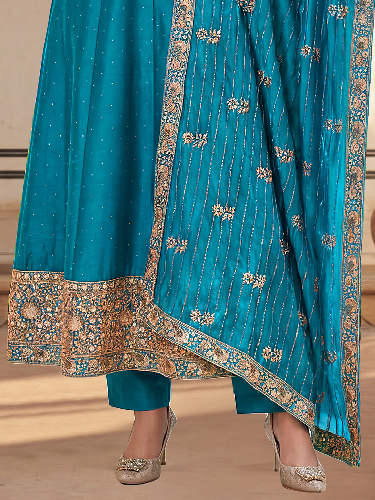 Aqua Silk Festive Salwar Suit With Graceful Embellishments