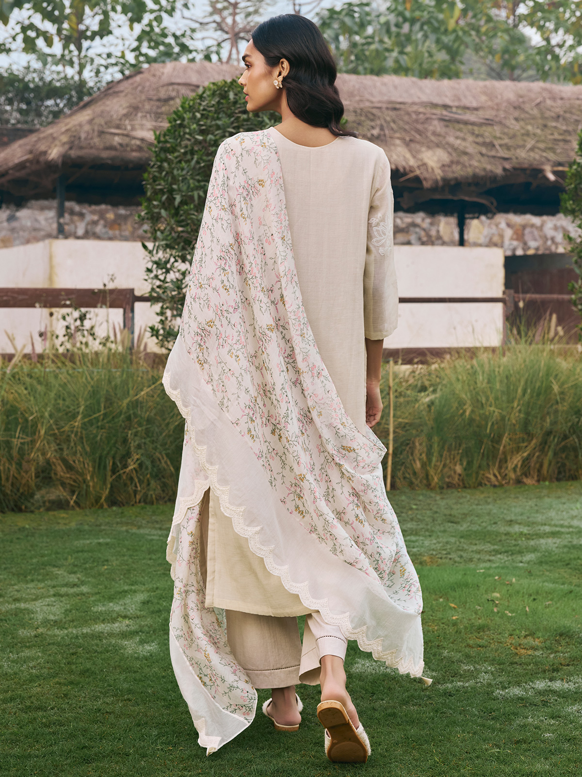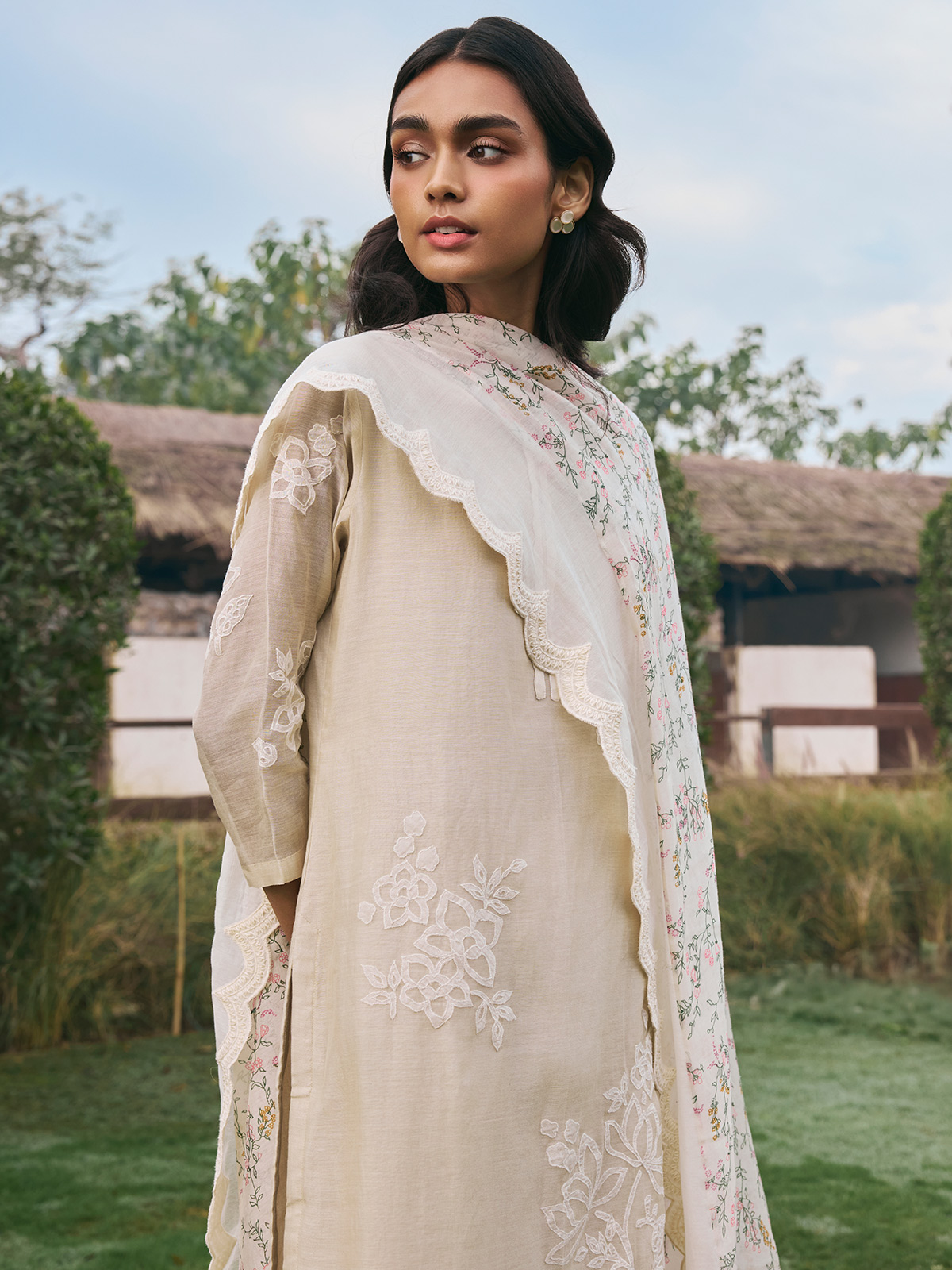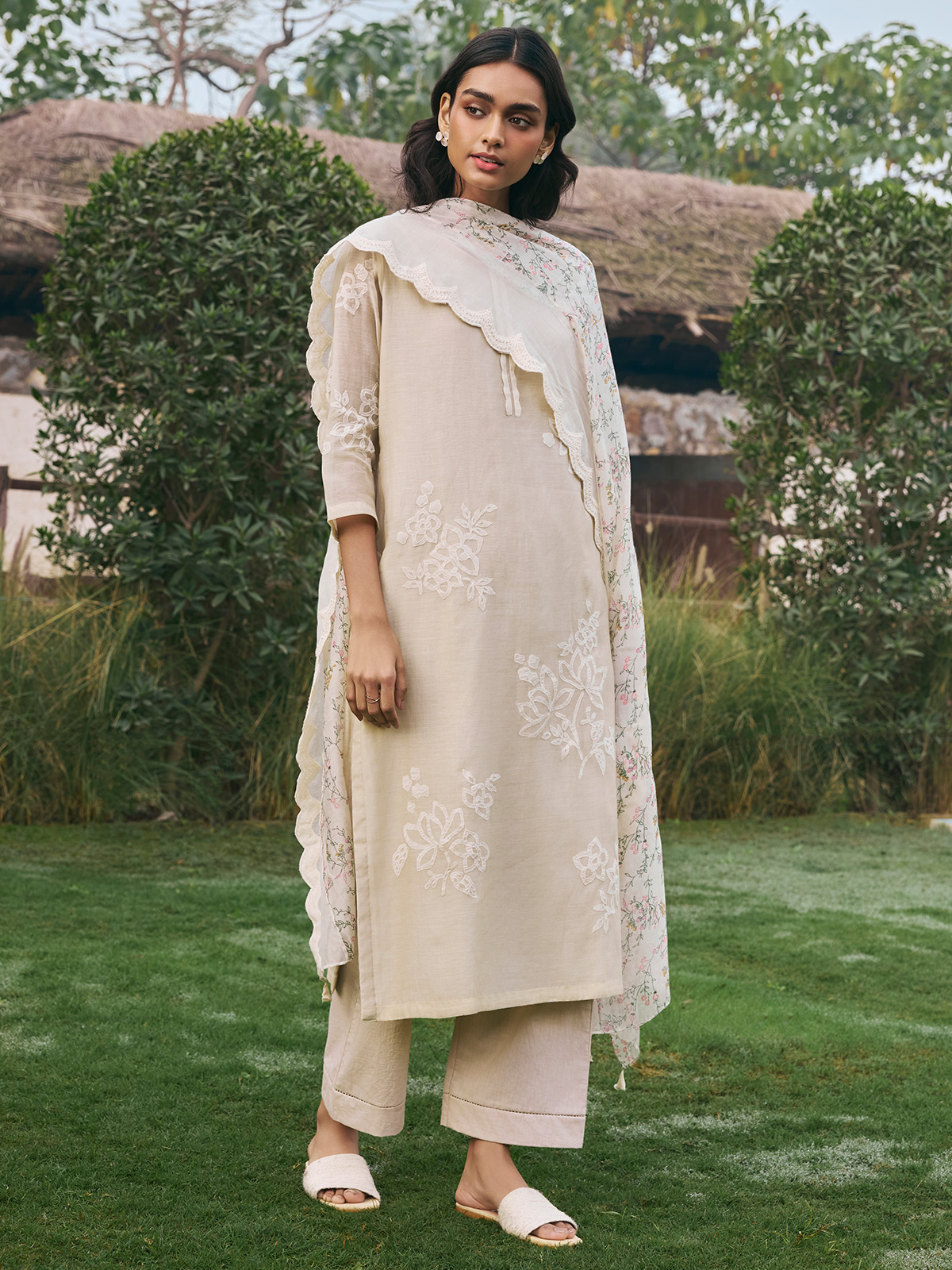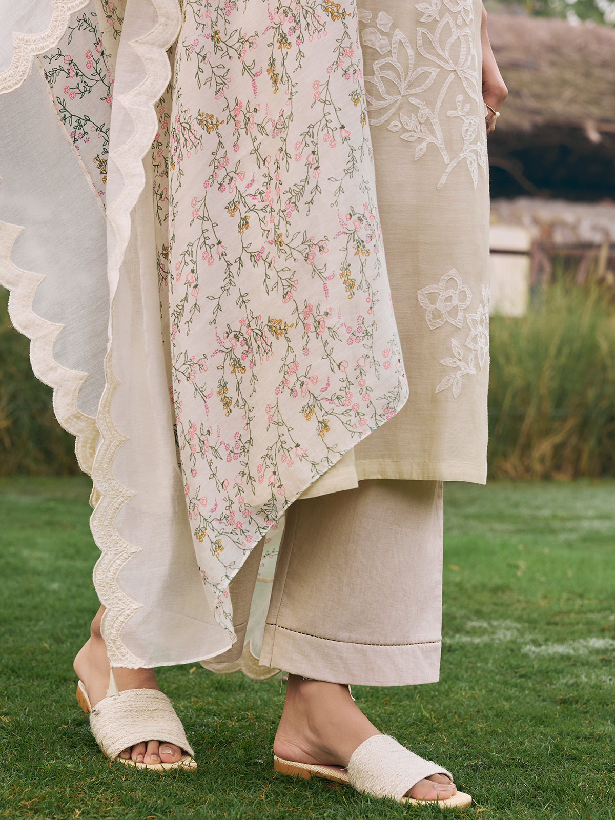 Beige Muslin Cotton Salwar Suit With Dupatta For Festive Wear