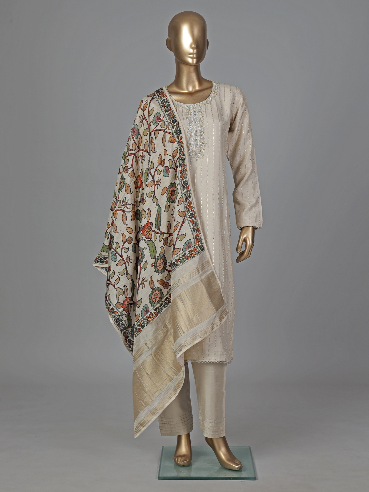 Beige Silk Heavy Embellished Festive Salwar Suit