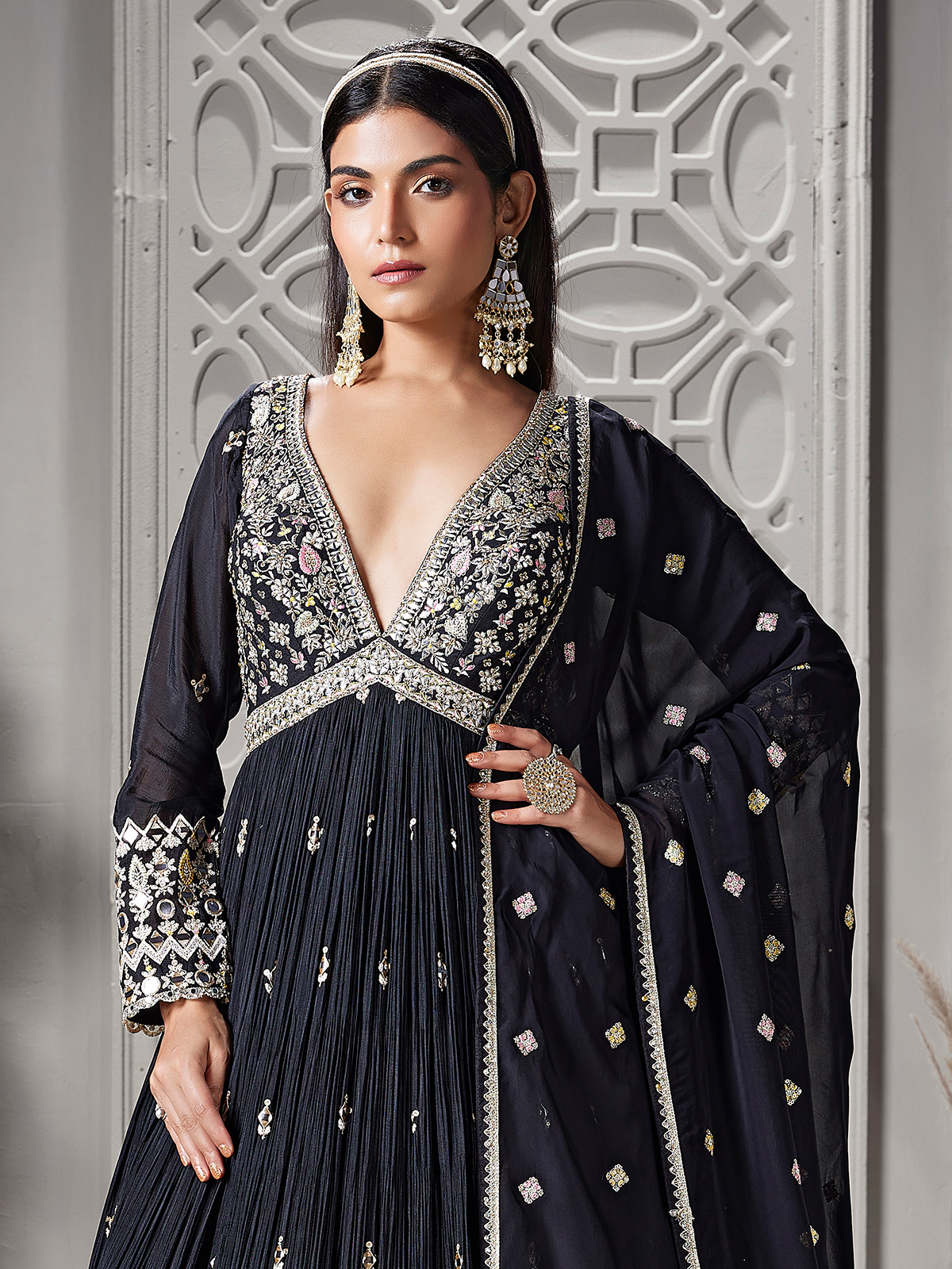 Black Embellished Pakistani Inspired Anarkali Suit