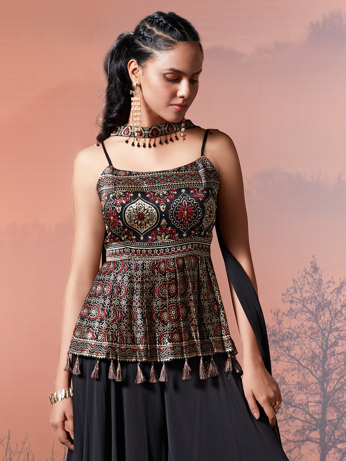 Black Georgette Silk Printed Palazzo Suit With Dupatta