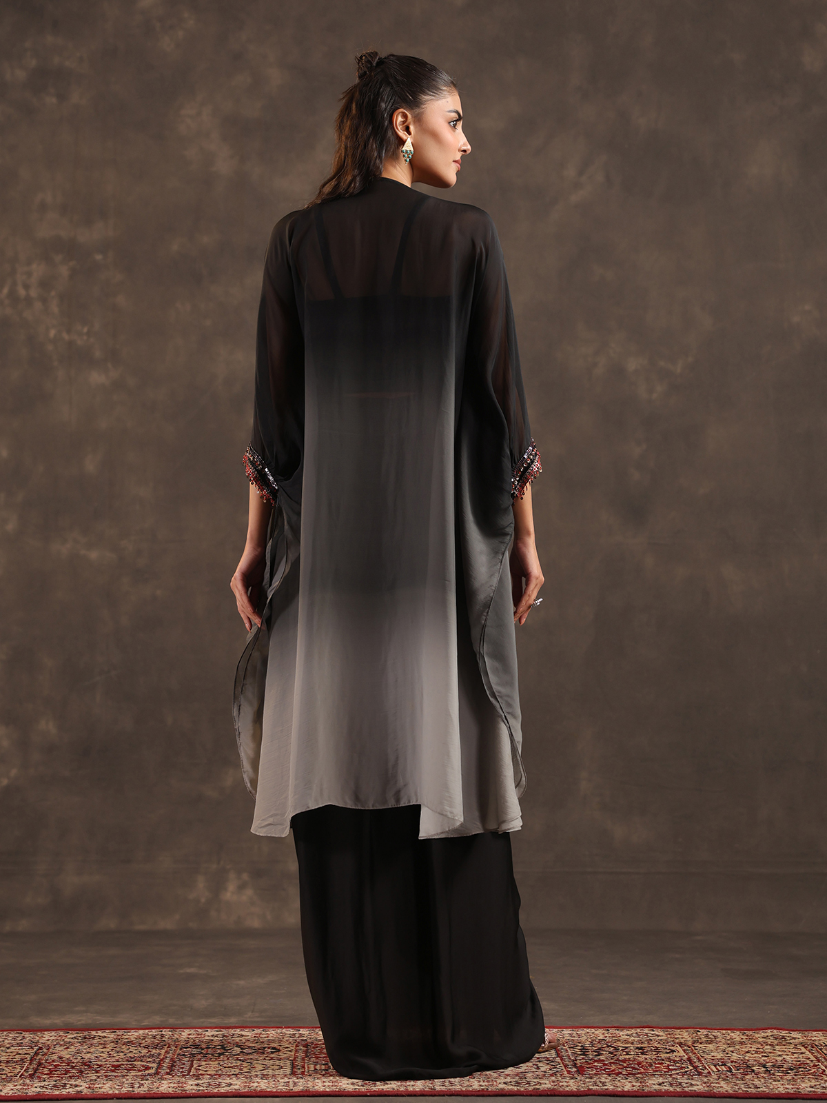 Black Organza Embellished Kaftan Suit With Elegant V Neckline