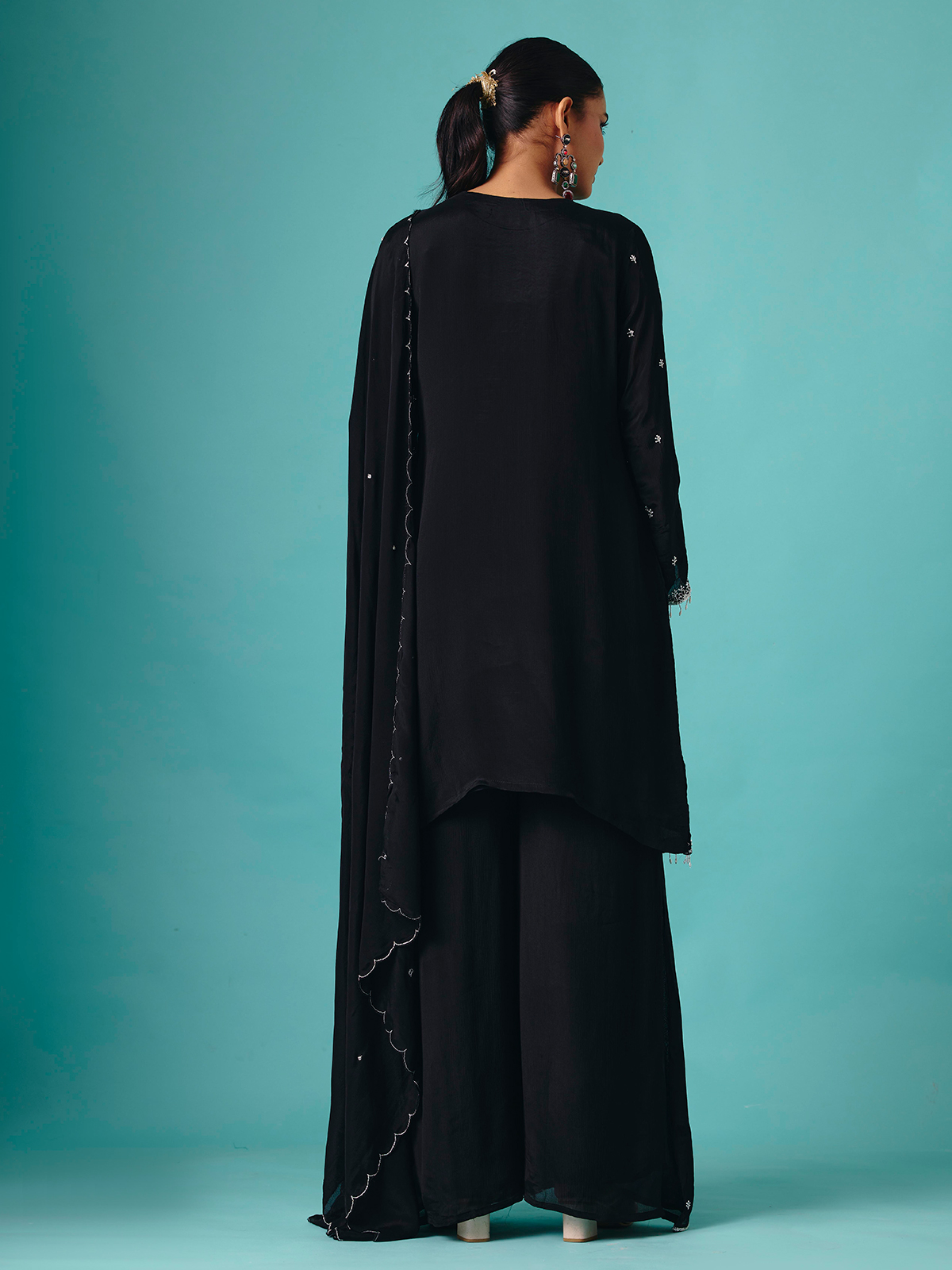Black Silk Georgette Round Neck Classic Palazzo Suit