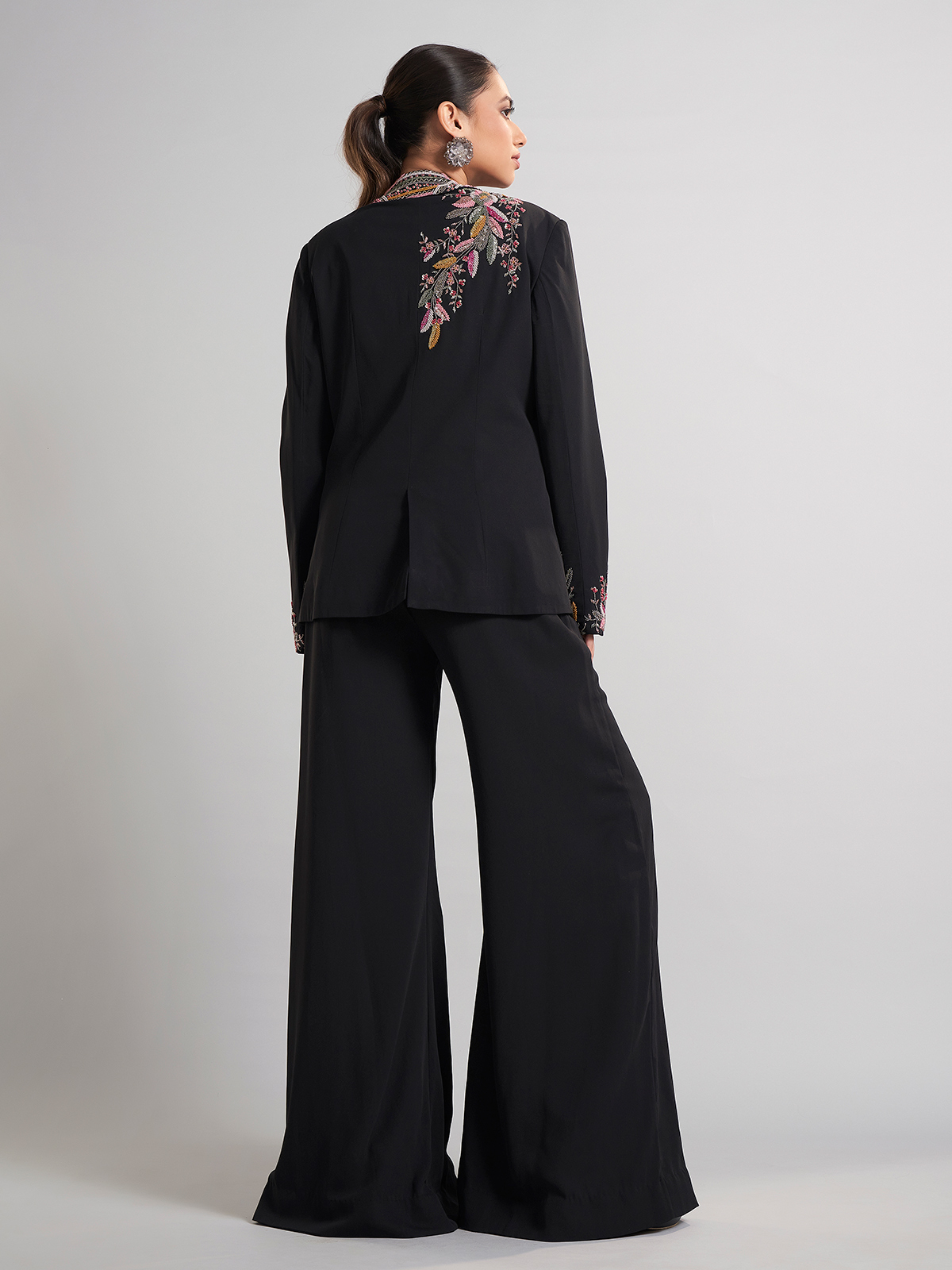 Black Terry Rayon Jacket-style Palazzo Suit