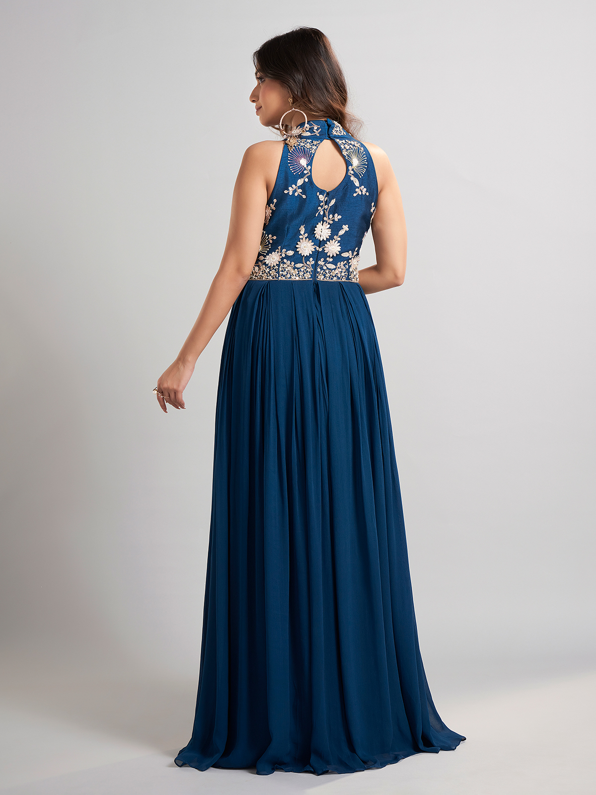 Blue Georgette Silk Embellished Floor-length Ensemble
