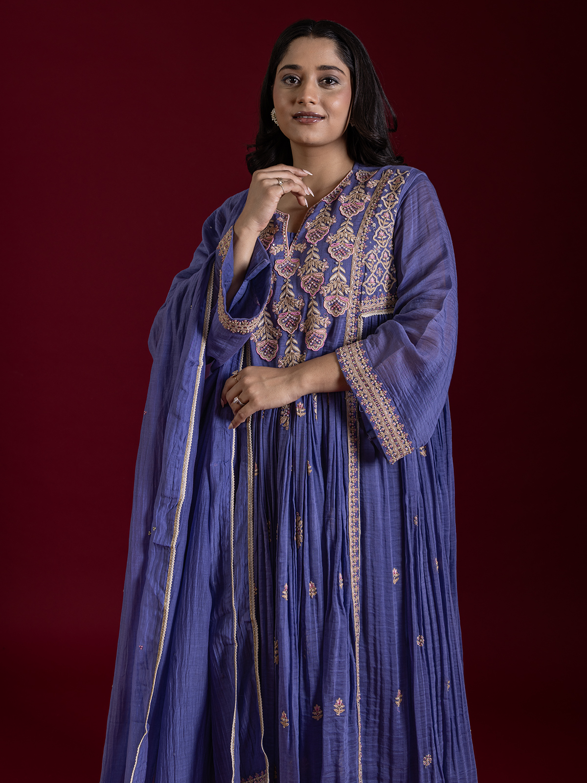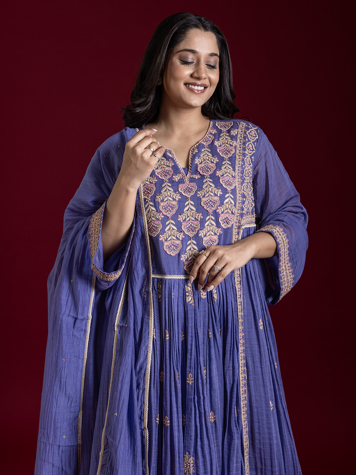 Blue Silk Resham Worked Festive Wear Salwar Suit