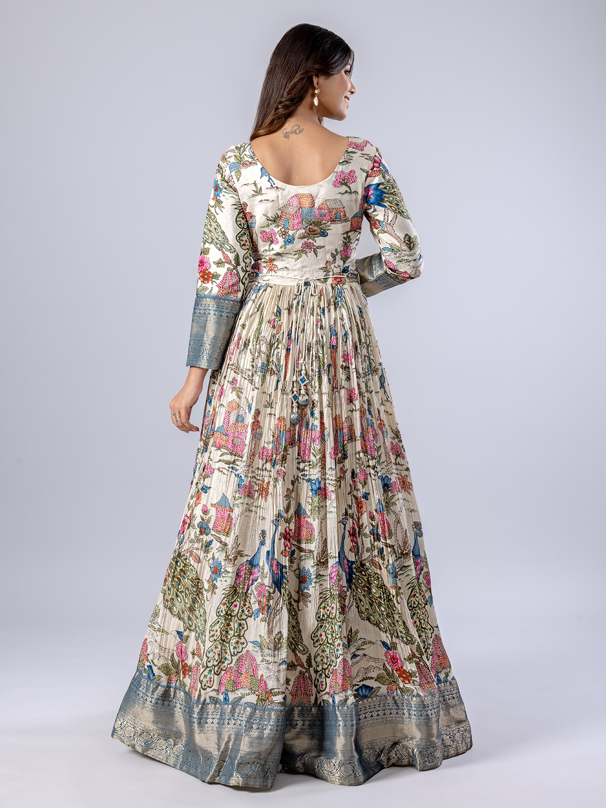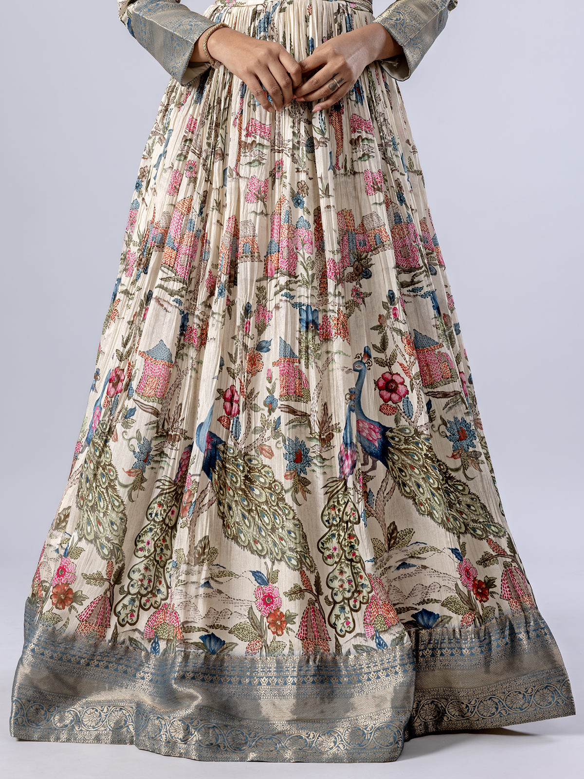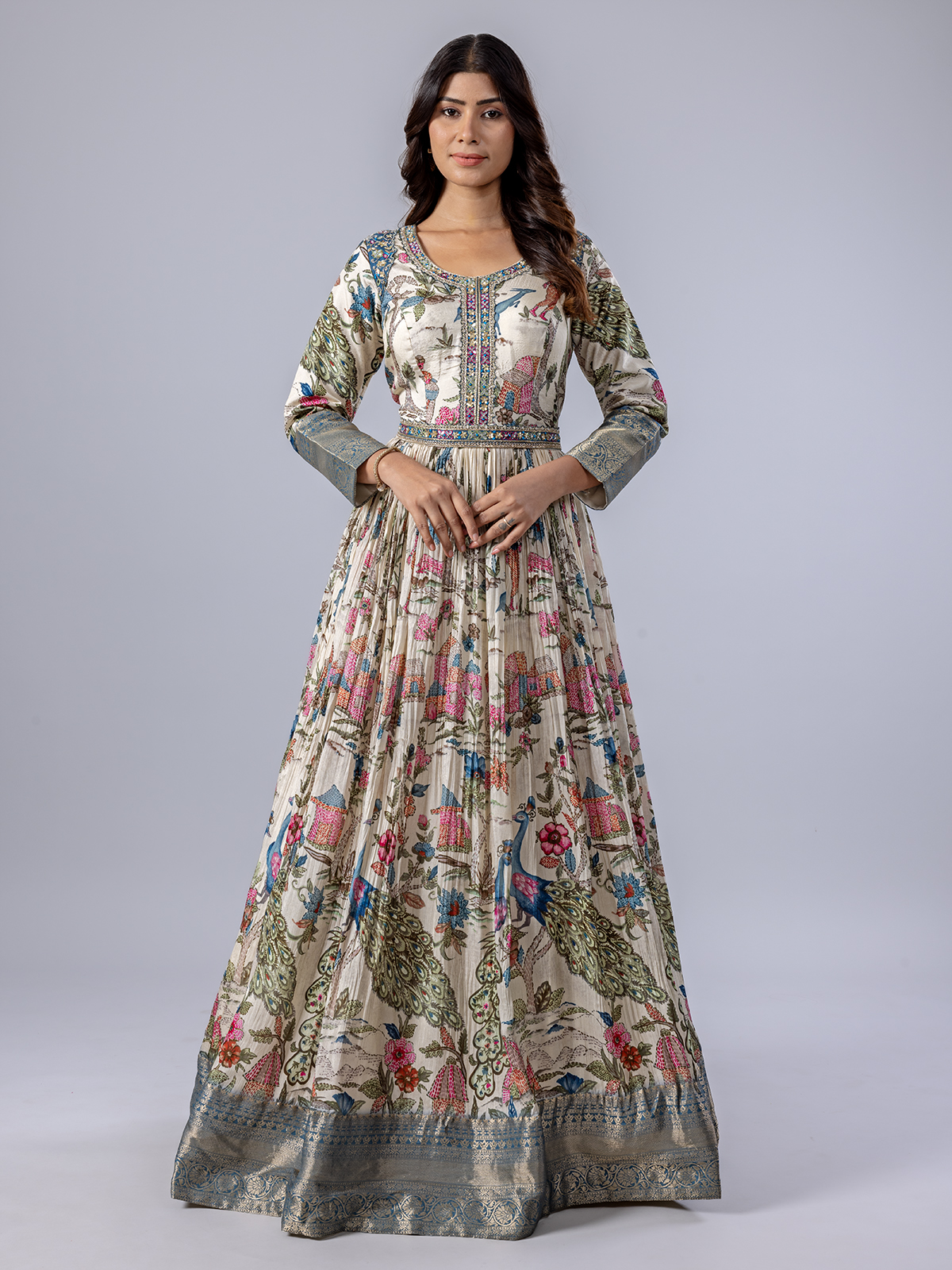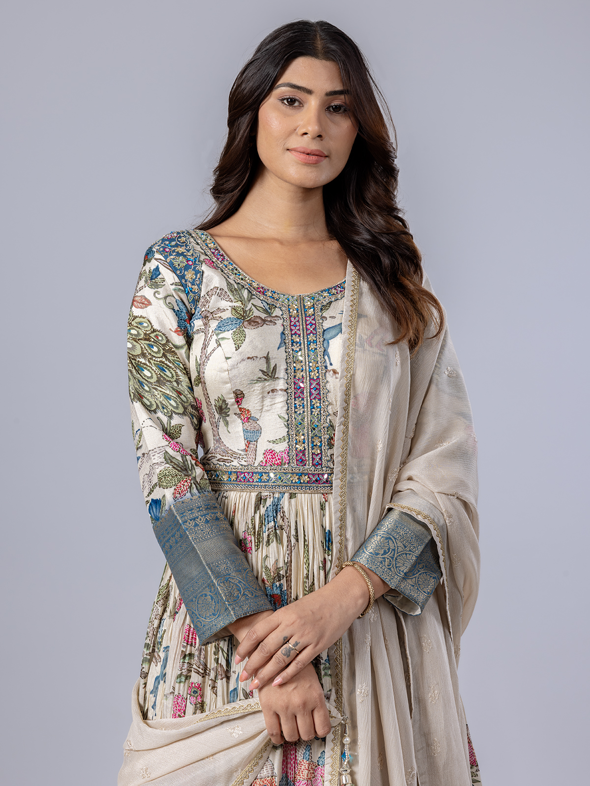 Cream Floor Length Anarkali Suit With Print