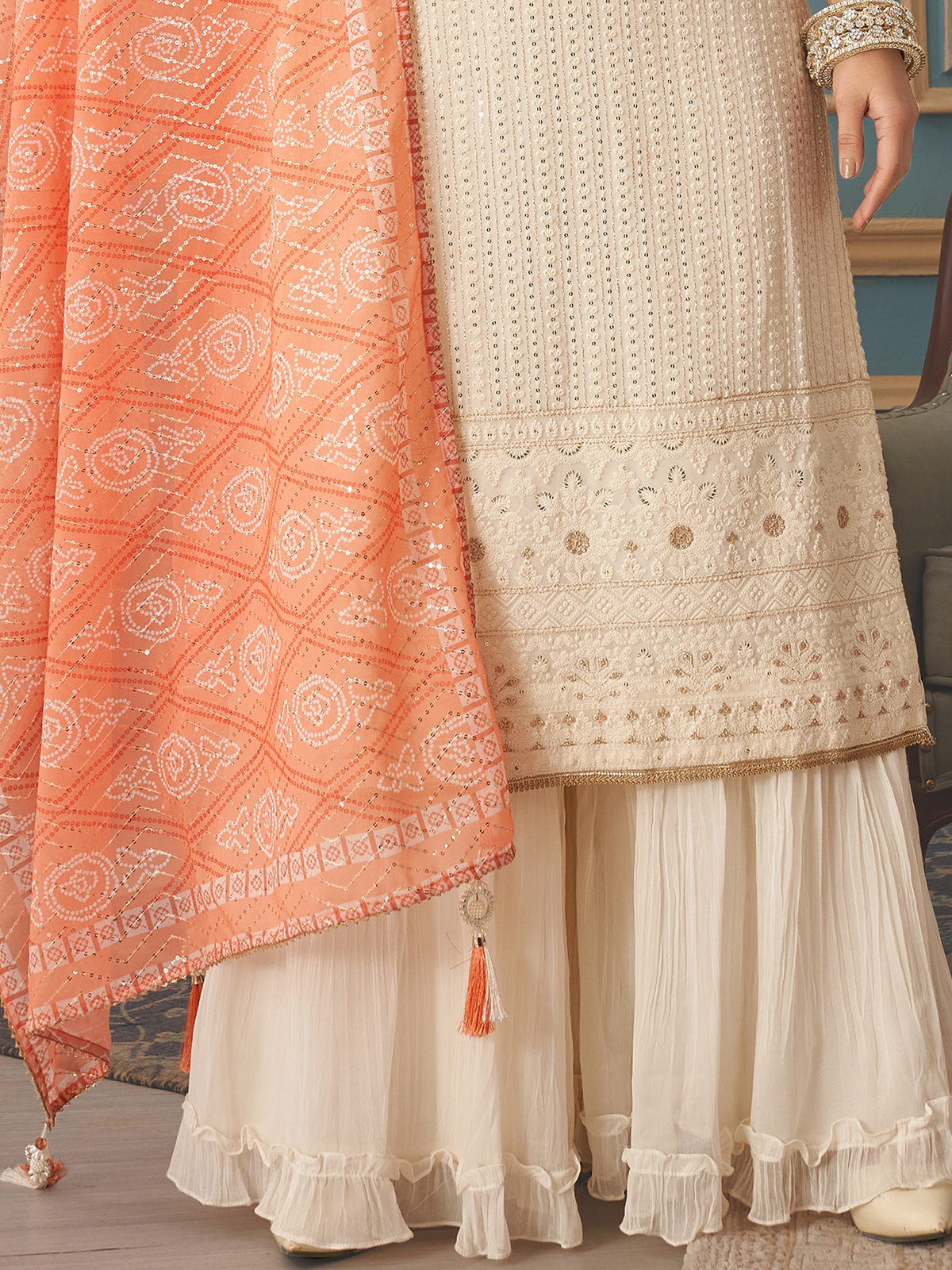 Cream Georgette Zardosi Work Palazzo Ensemble