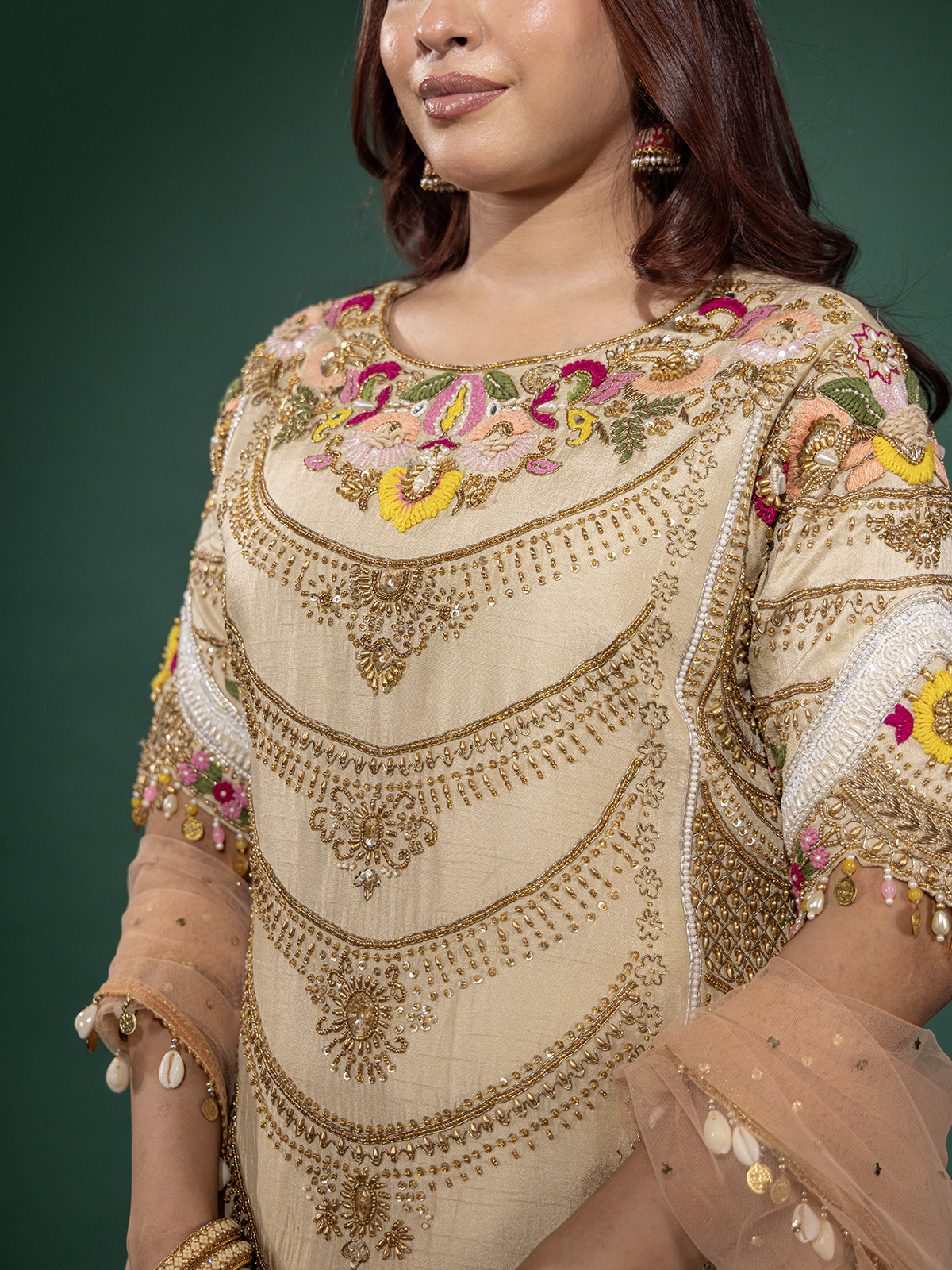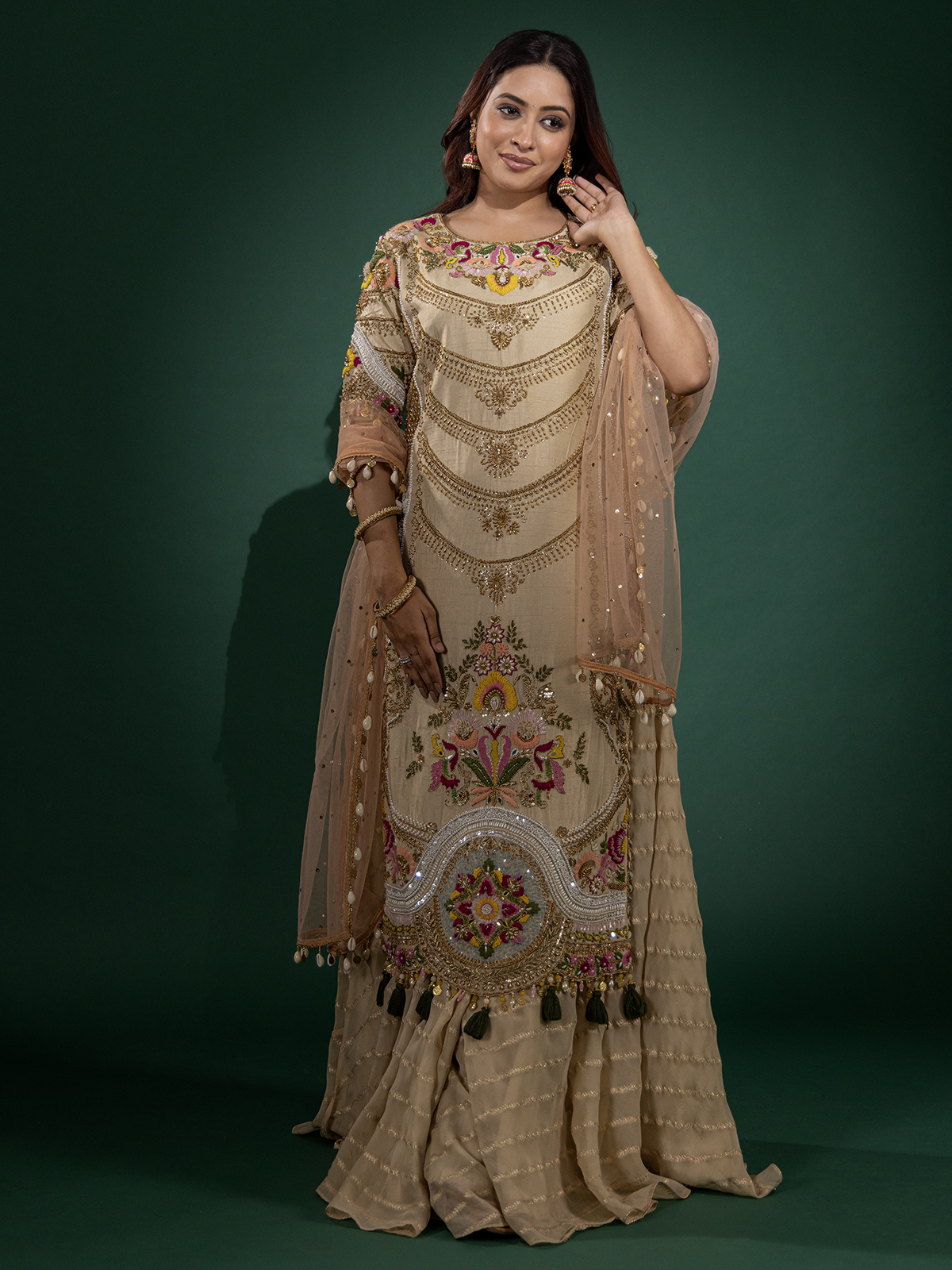 Cream Raw Silk Palazzo Suit For Wedding Celebration
