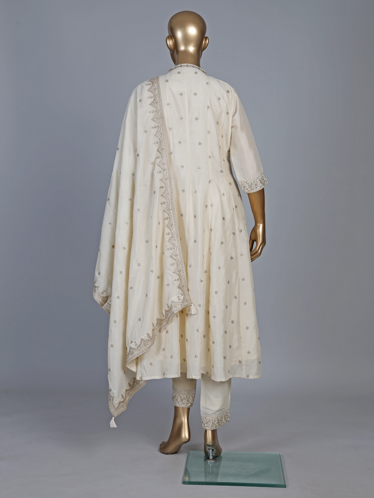 Cream Silk Anarkali Style Festive Salwar Suit