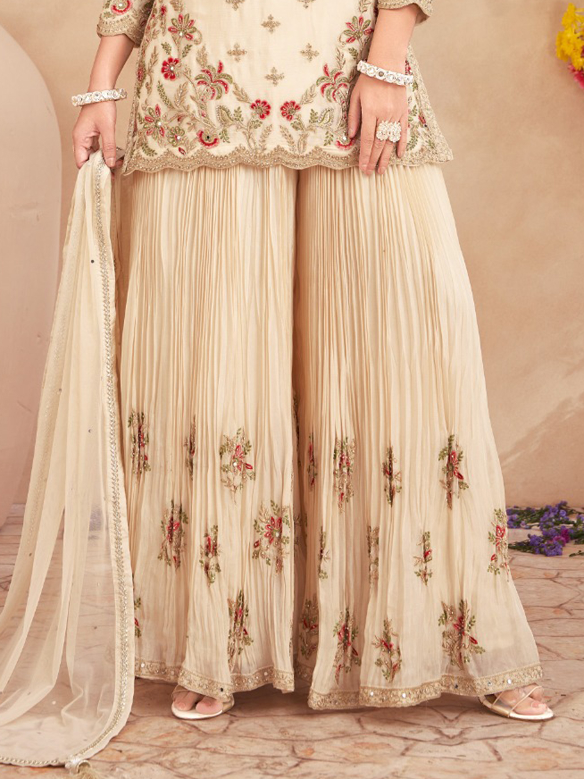 Cream Silk Palazzo Suit For Festive Occsion