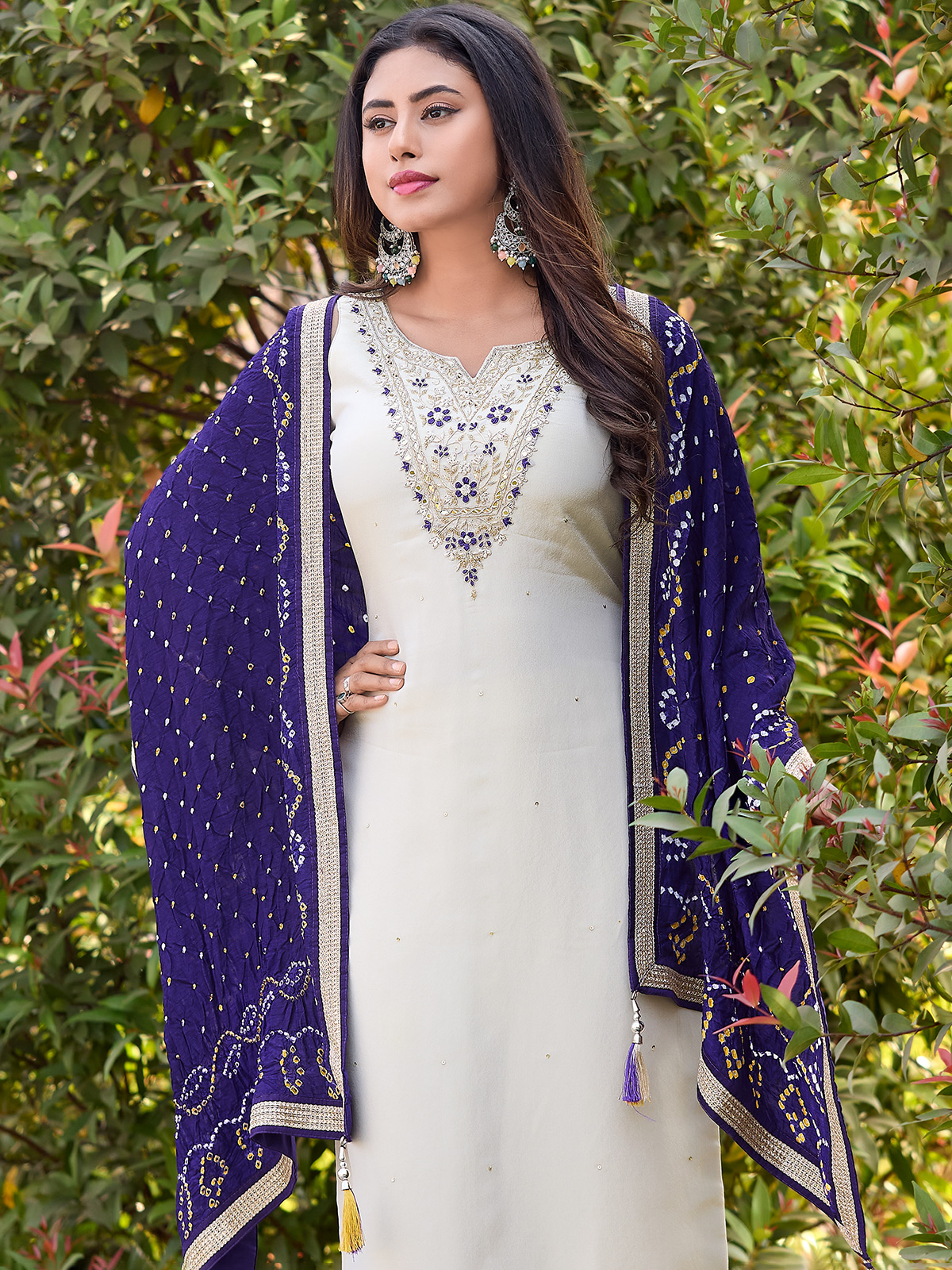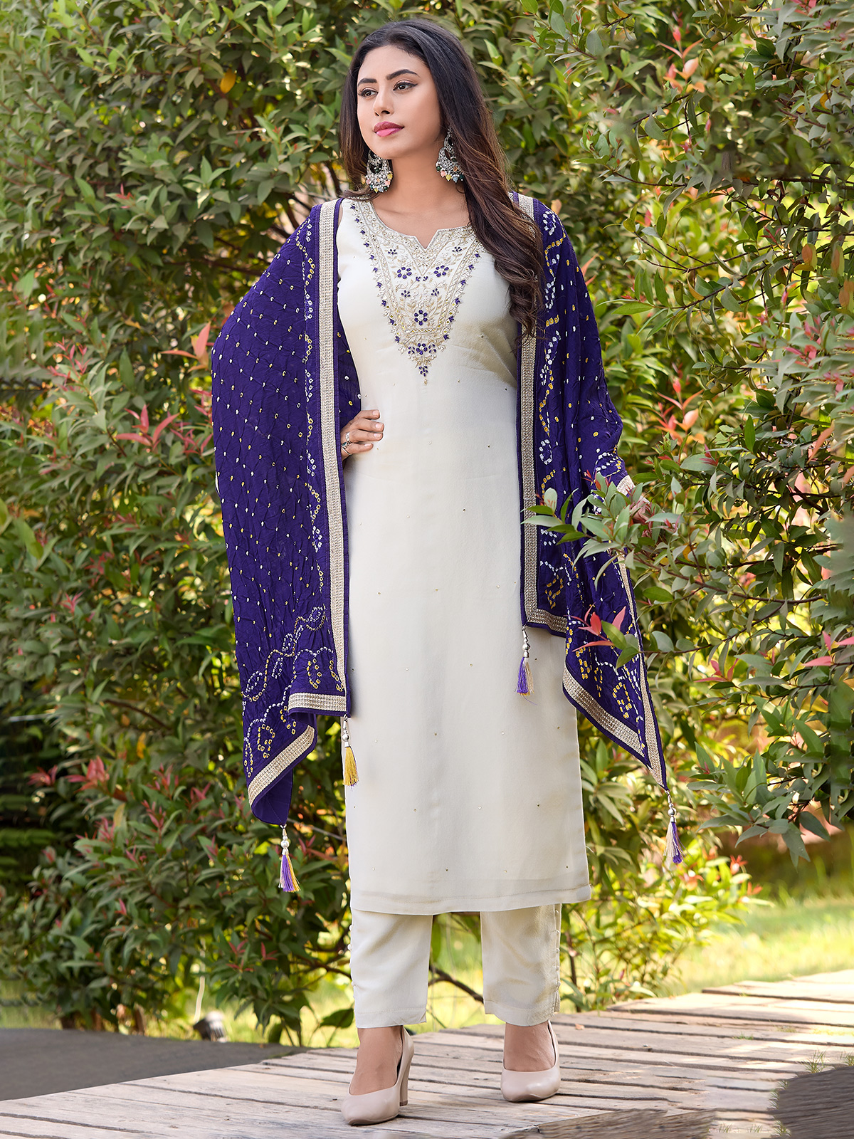 Cream Straight Cut Silk Salwar Suit For Festival Season