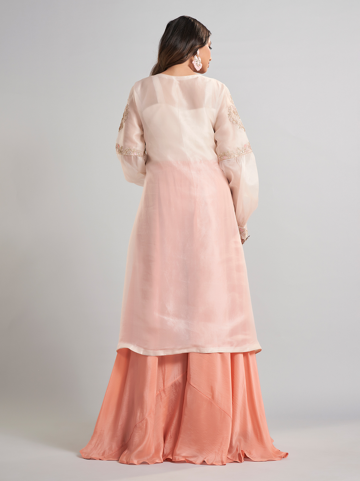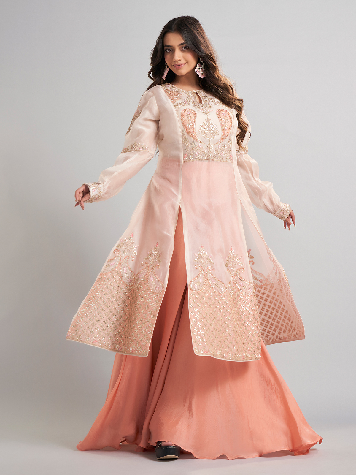 Cream Tissue And Satin Silk Pakistani Palazzo Outfit