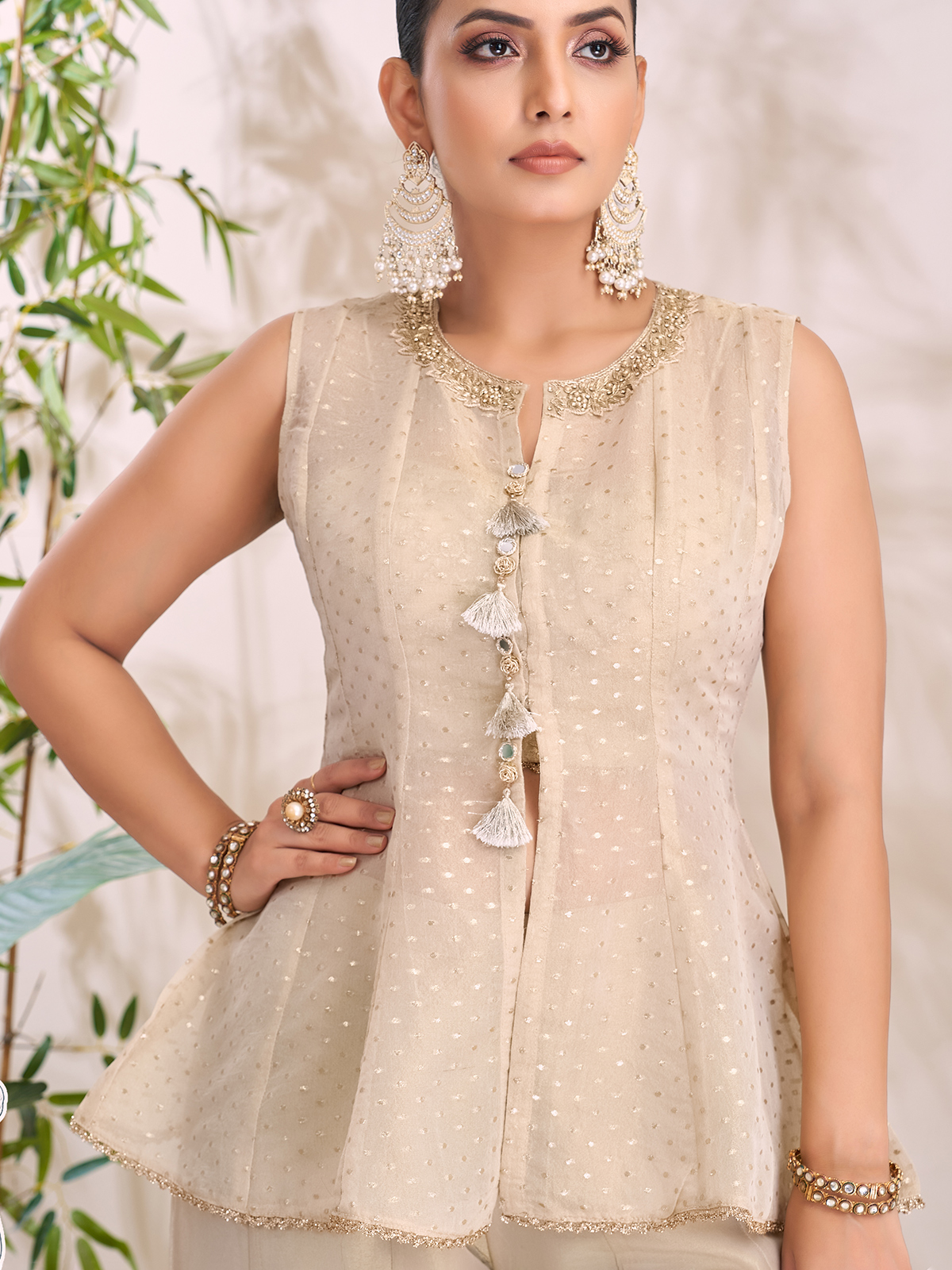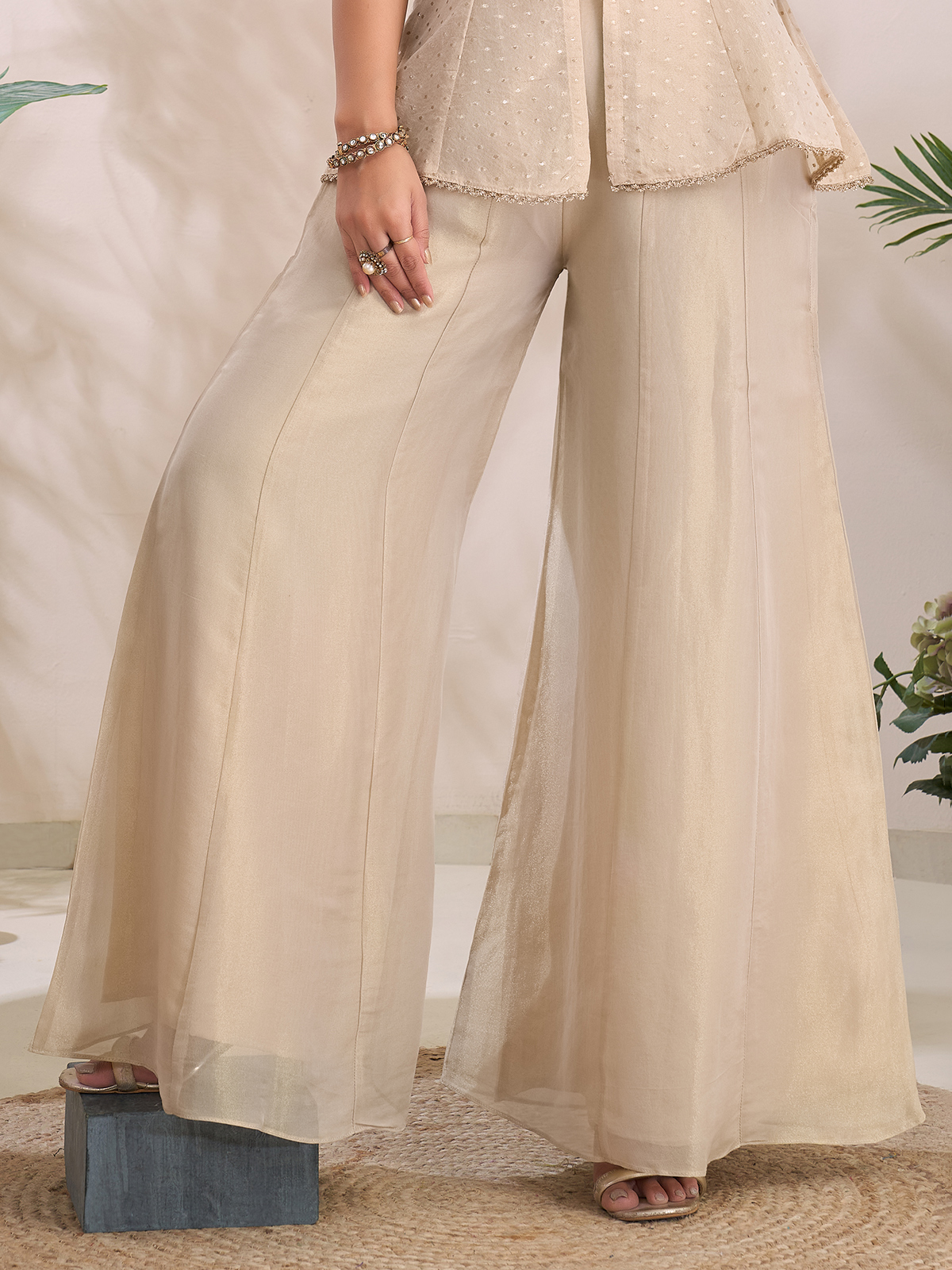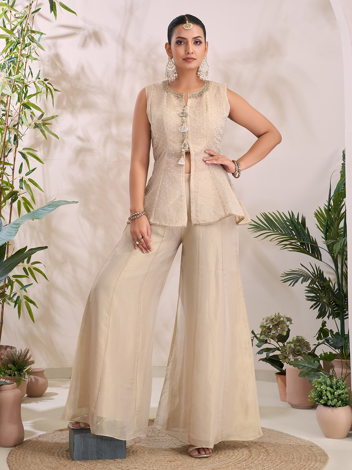 Cream Tissue Silk Palazzo Suit With Sparkling Embellishments