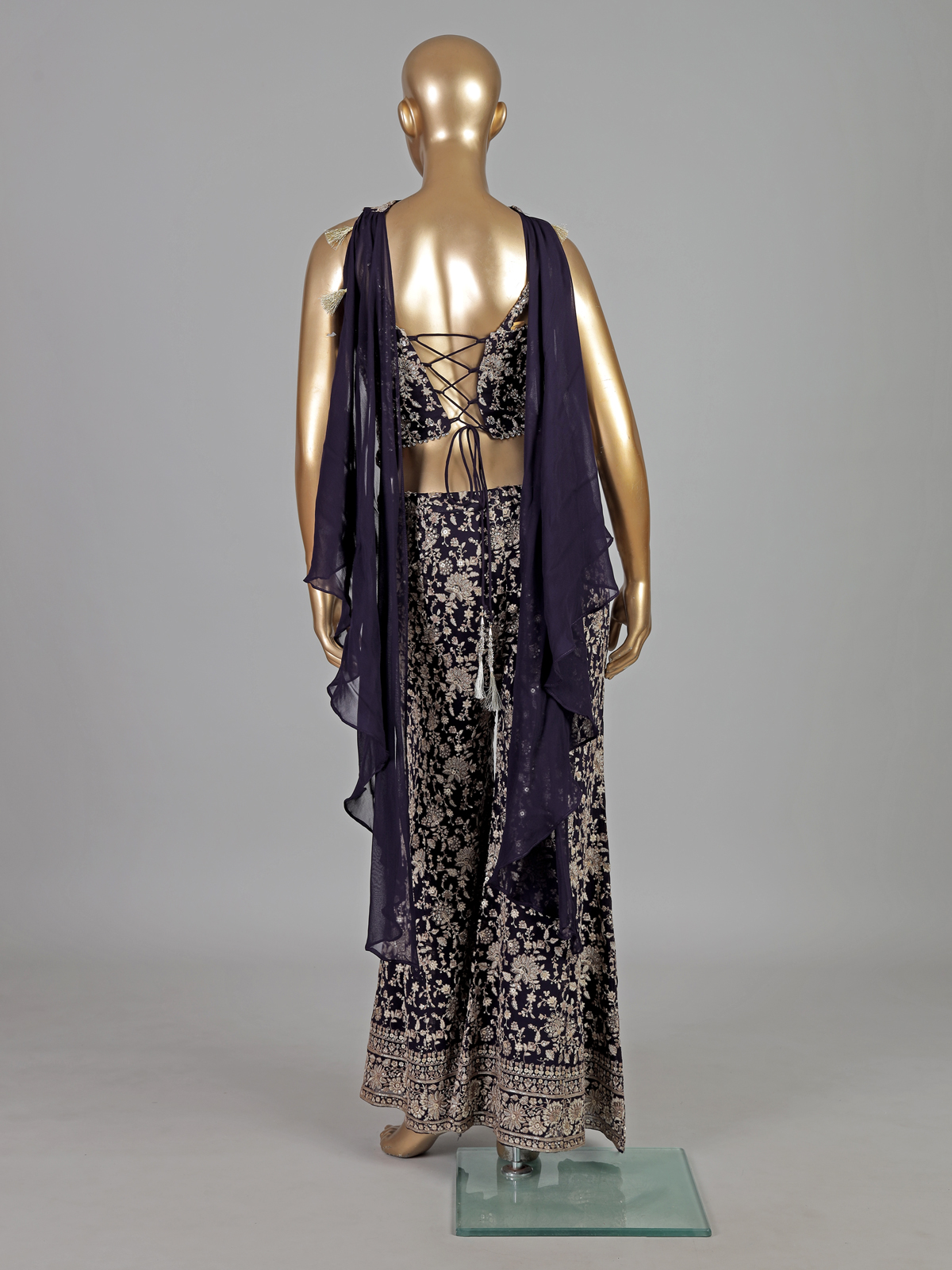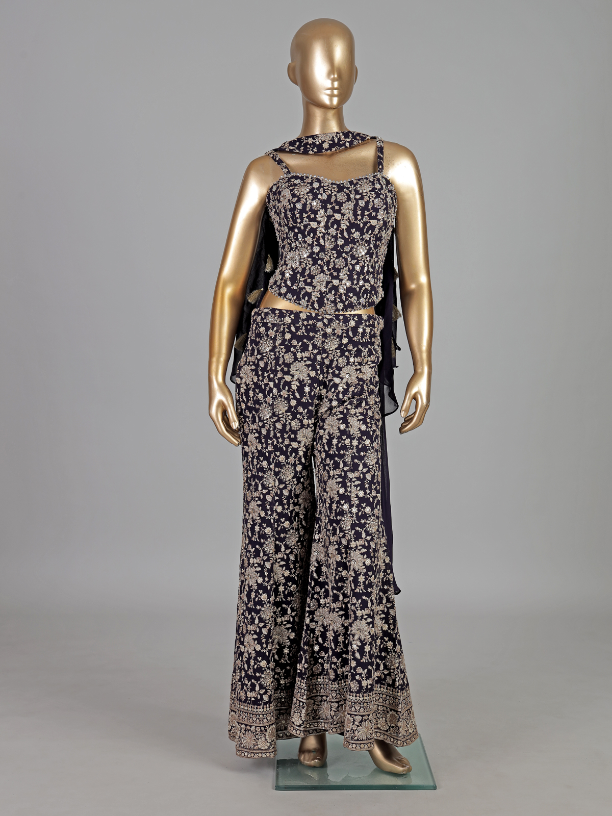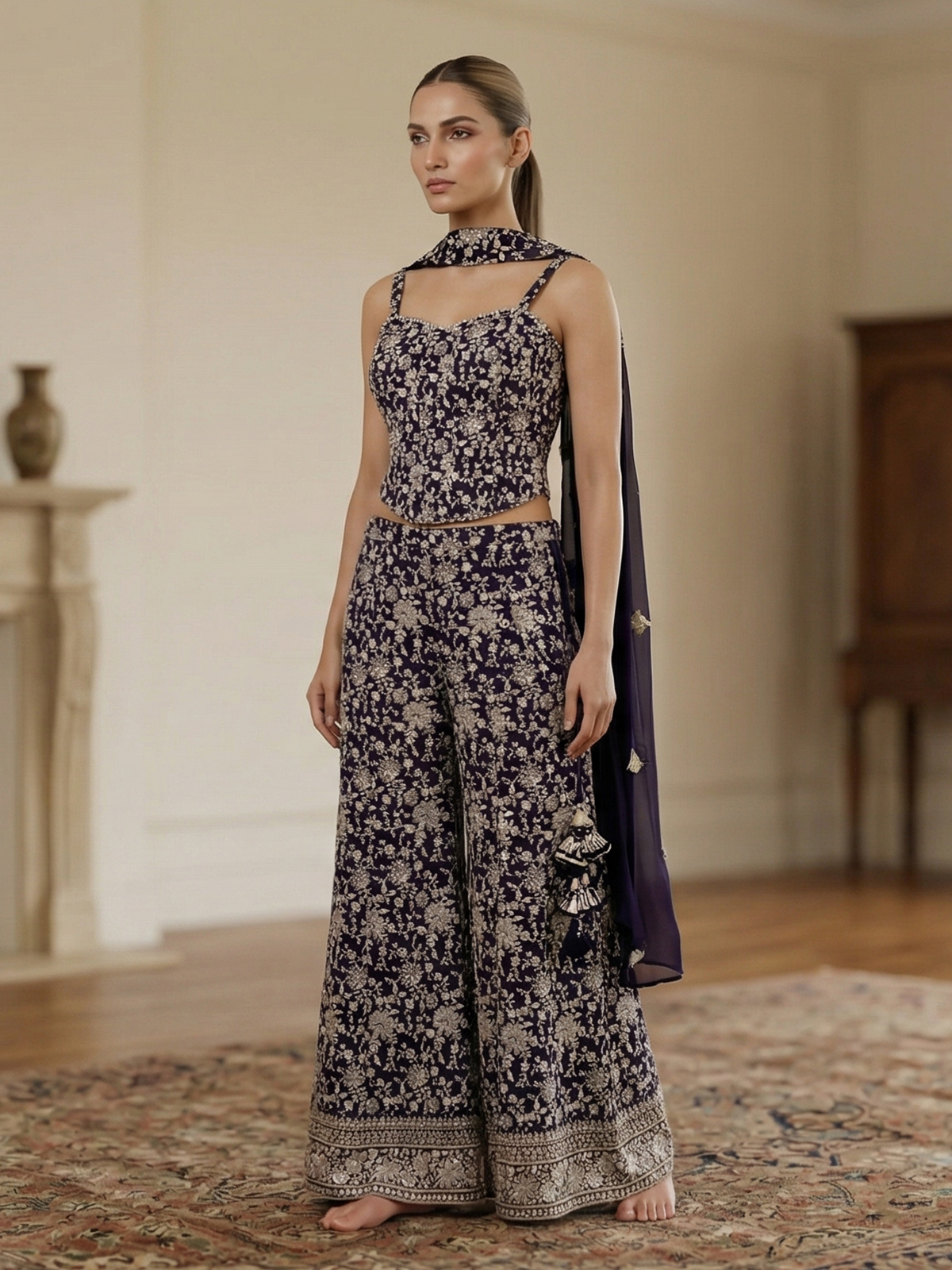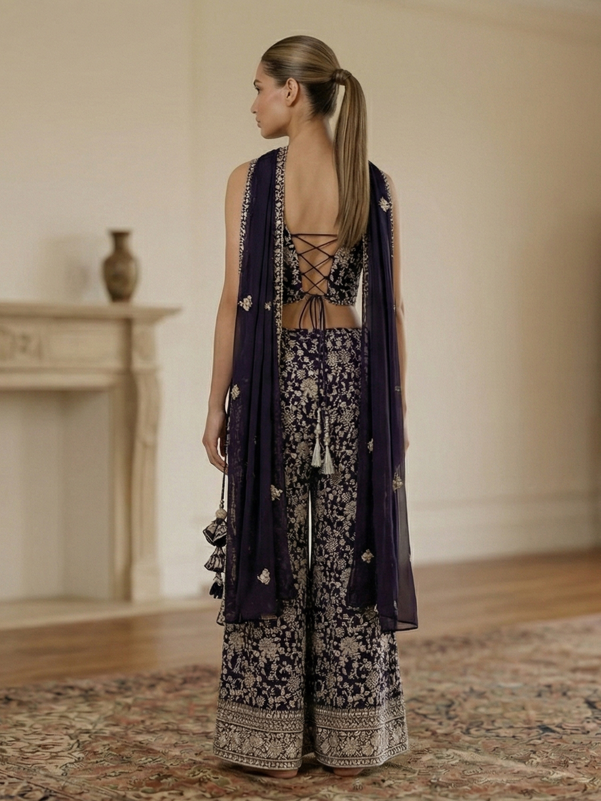 Dark Purple Georgette Pakistani Festive Palazzo Suit