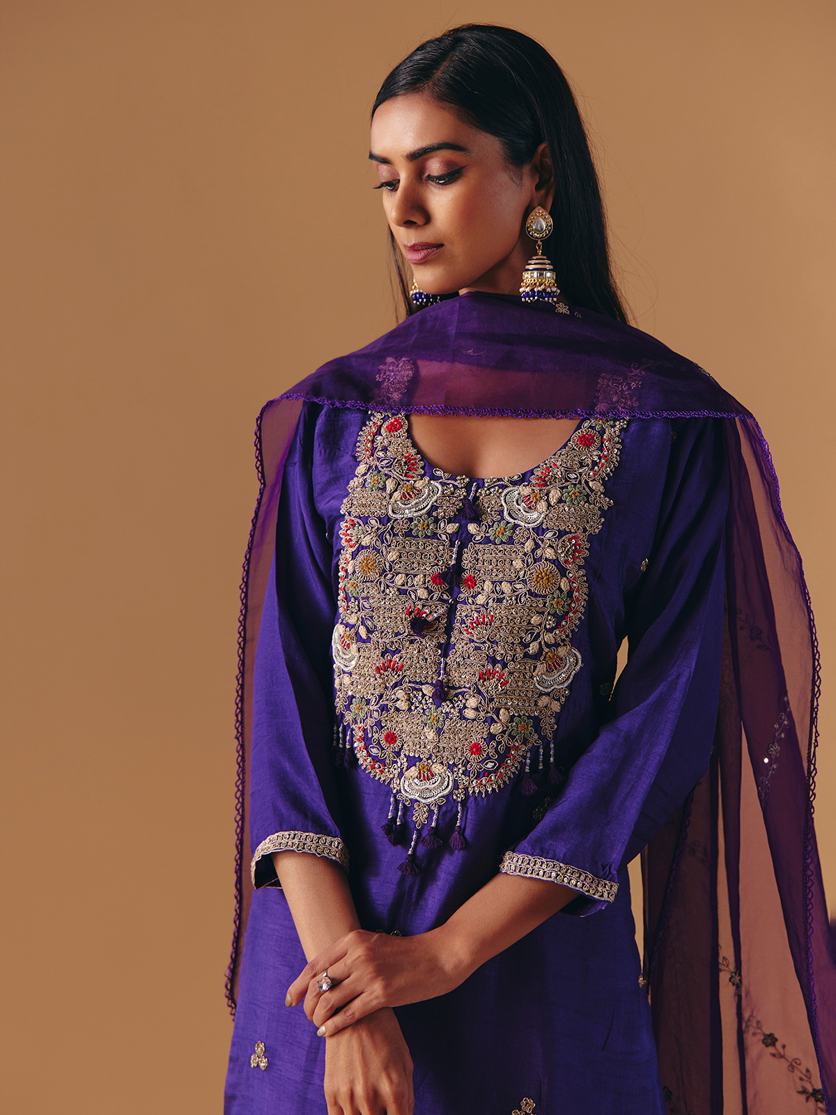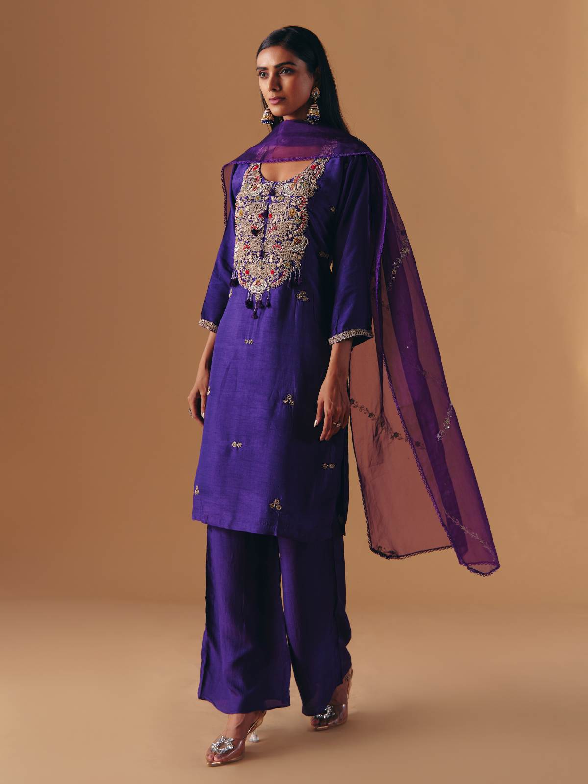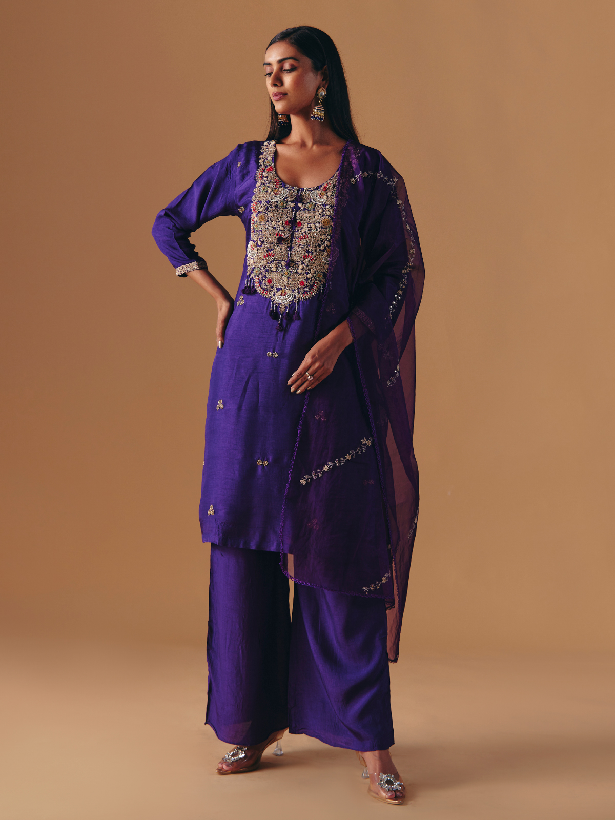 Dark Purple Silk Regal Palazzo Salwar Suit