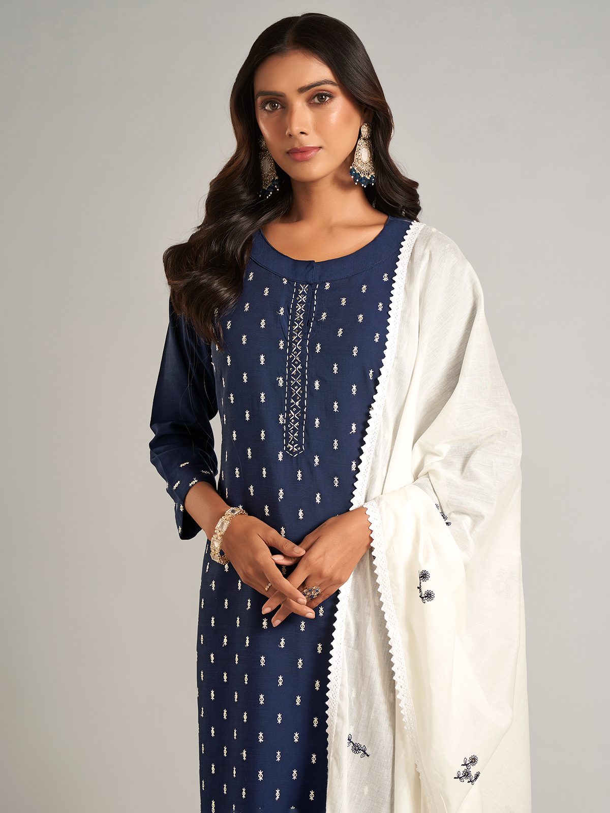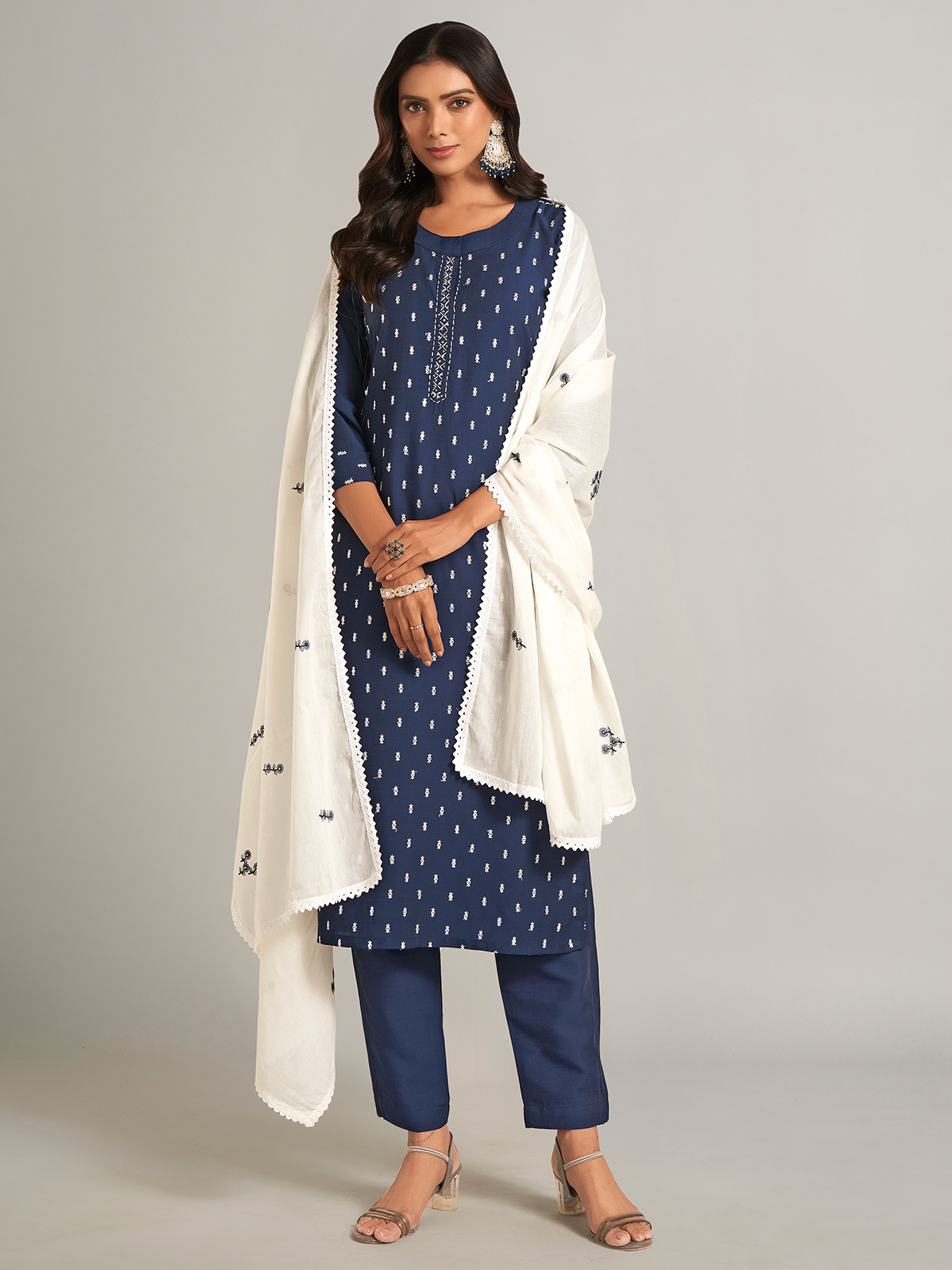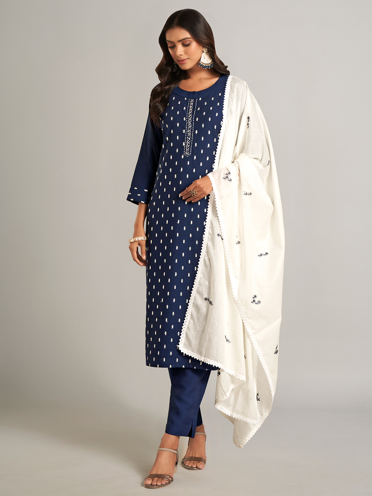 Dazzling Navy Silk Salwar Suit With Dupatta