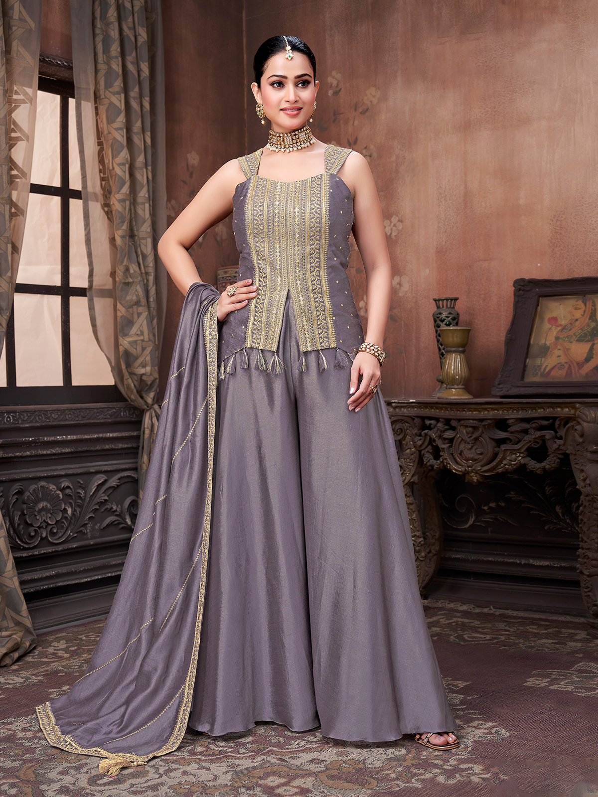 Dusty Purple Slk Palazzo Suit With Sangeet Vibe