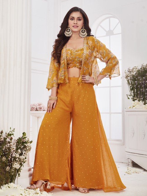 Gorgeous Jacket Style Mustard Yellow Palazzo Suit