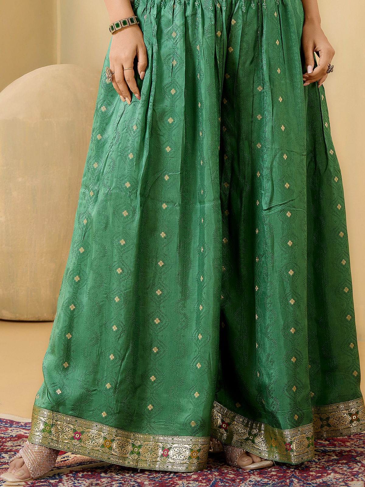 Green Banarasi Silk Palazzo Festive Wear Suit