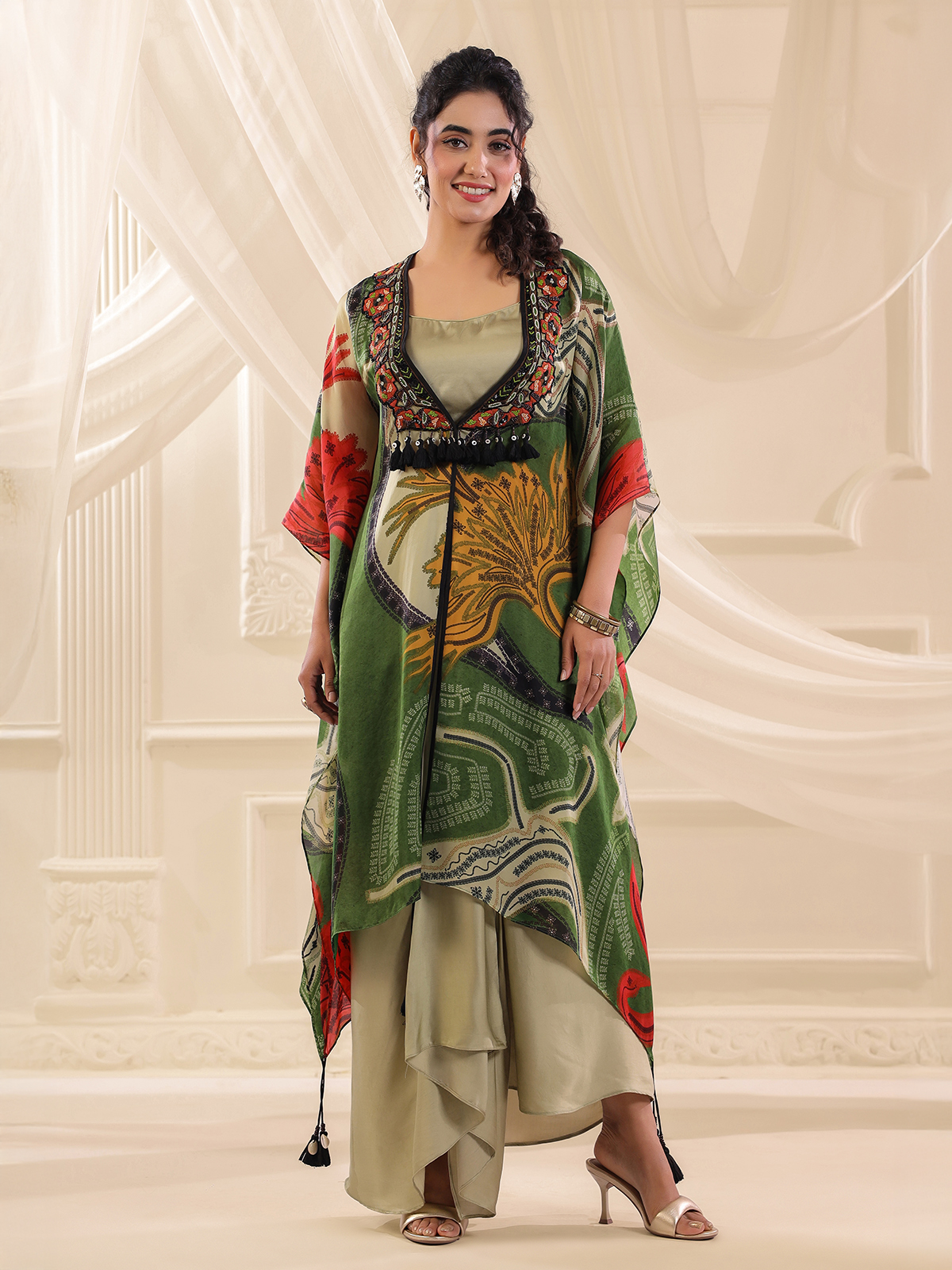 Green Georgette Silk Kaftan Style Indo Western Suit