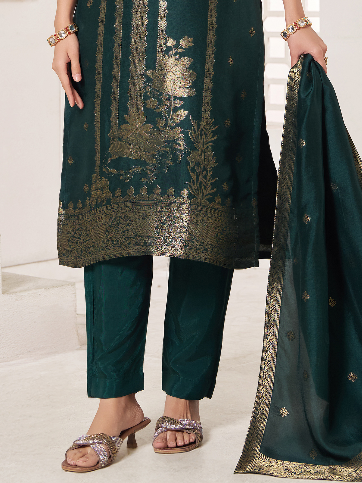 Green Silk Salwar Suit Enhanced With Shimmering Zari Work