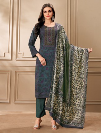 Green Tusser Silk Salwar Suit With Attractive Print