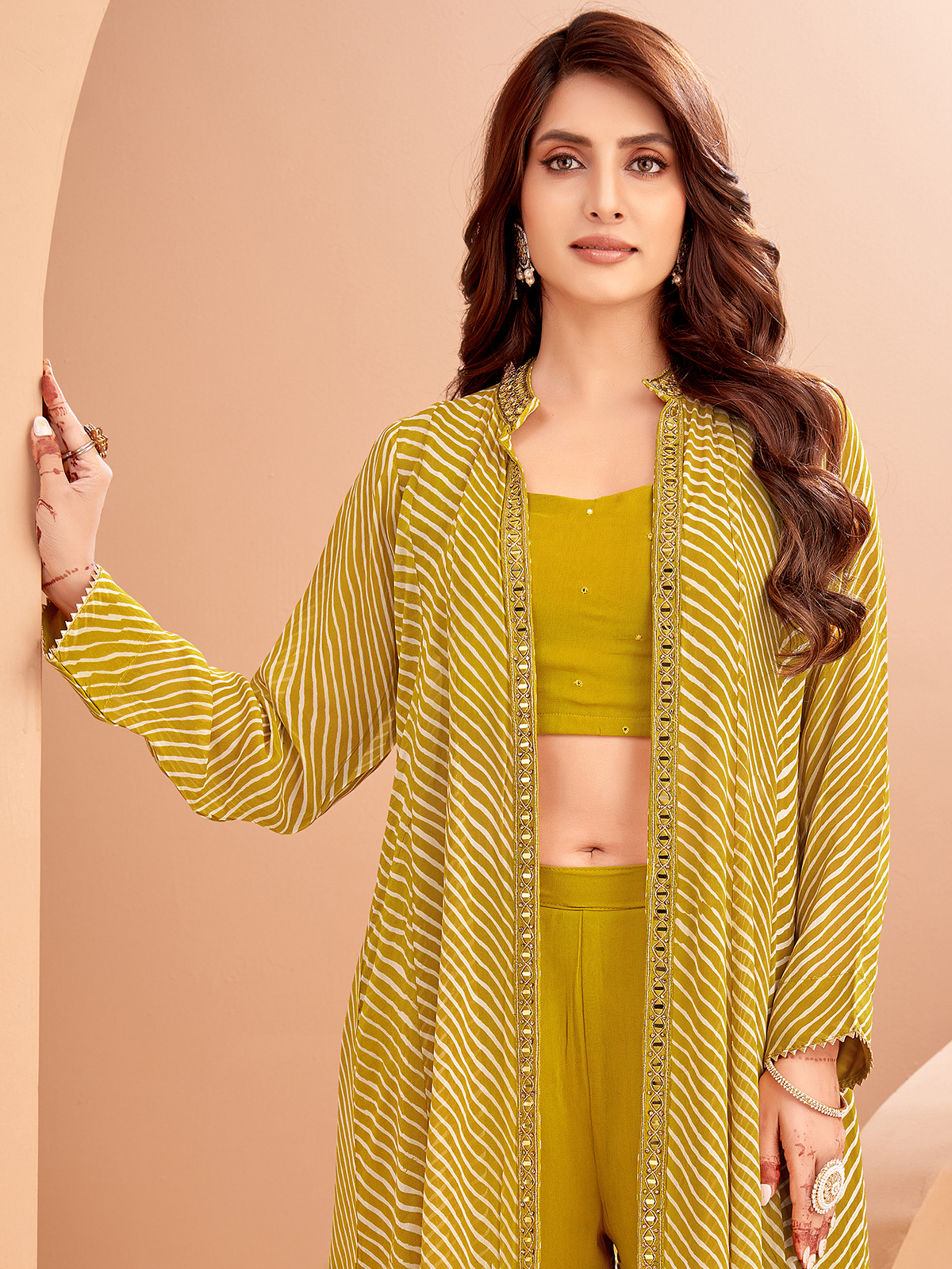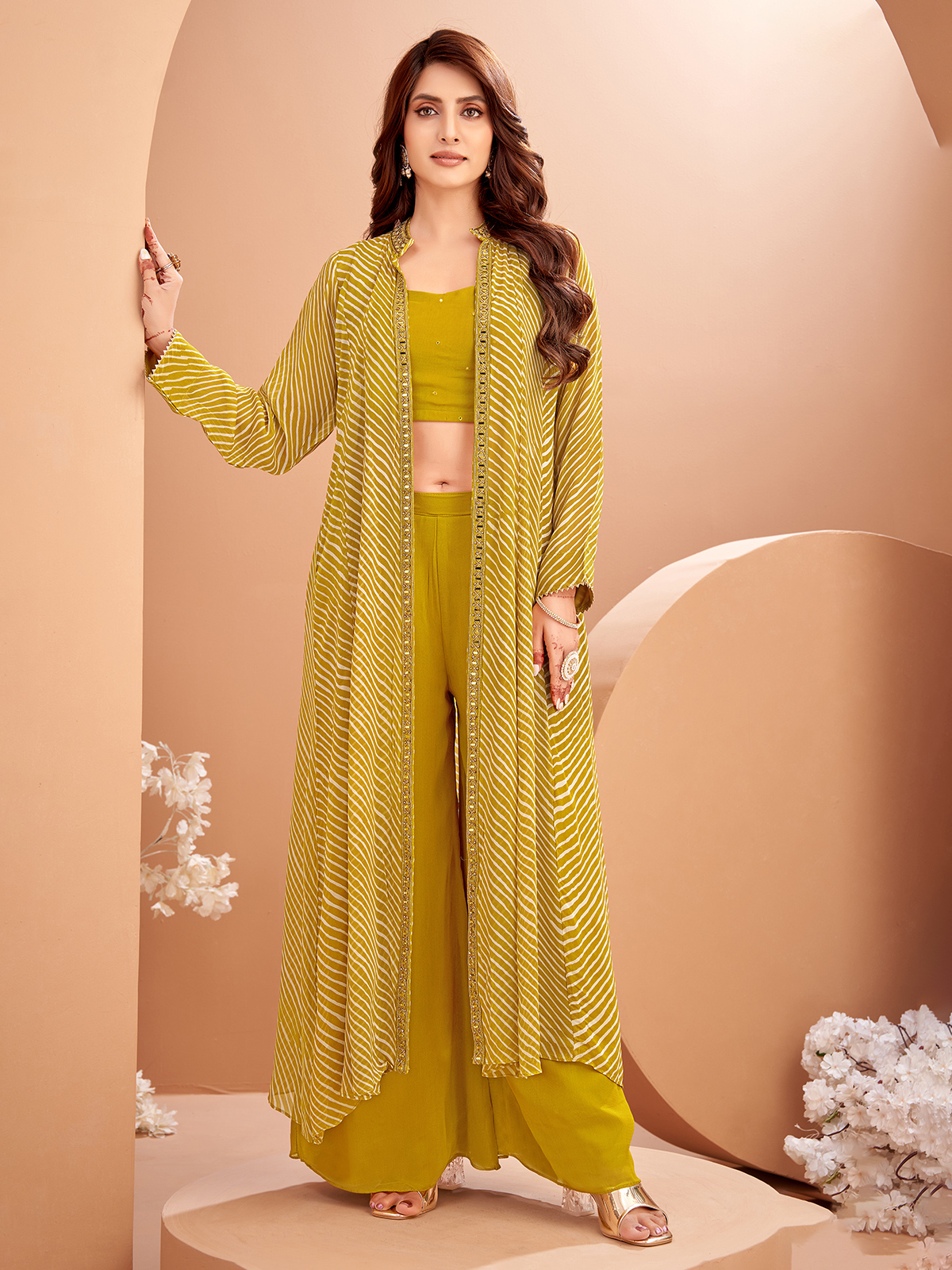 Jacket Style Mehendi Green Palazzo Suit In Georgette