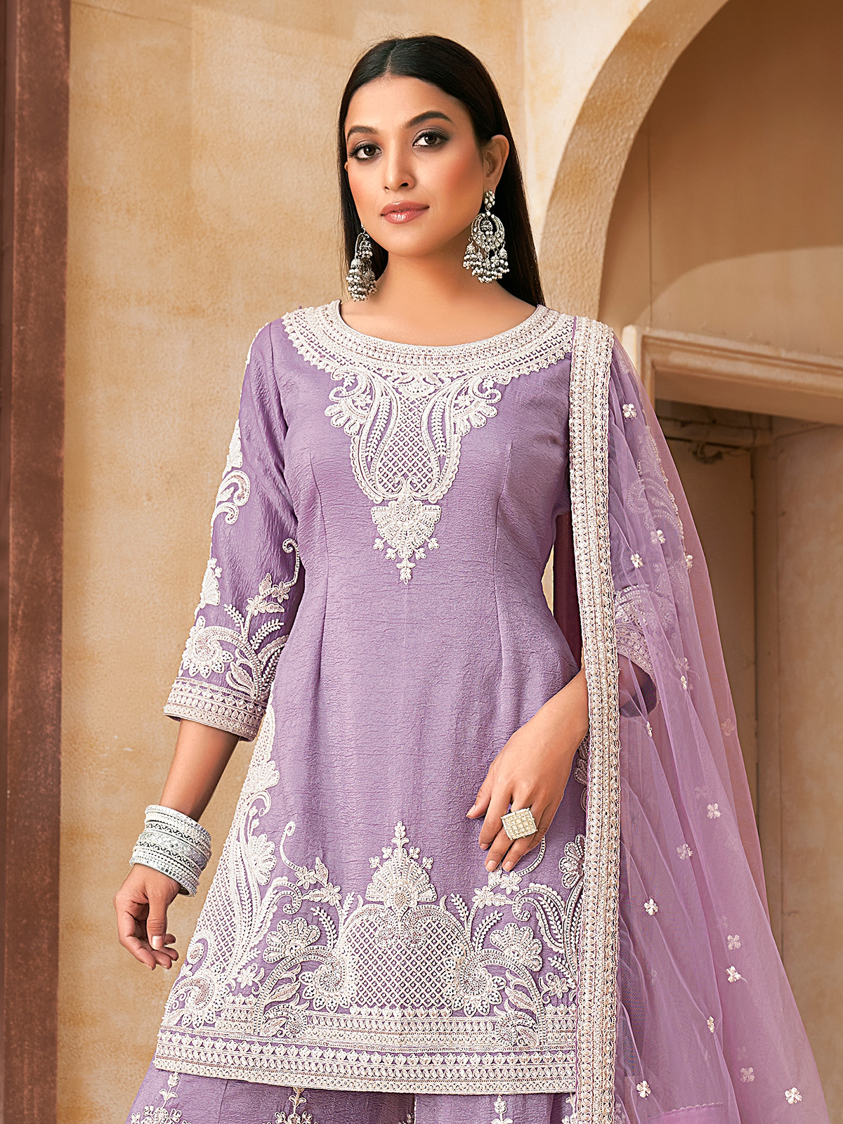 Lavender Purple Pakistani Chiffon Palazzo Suit