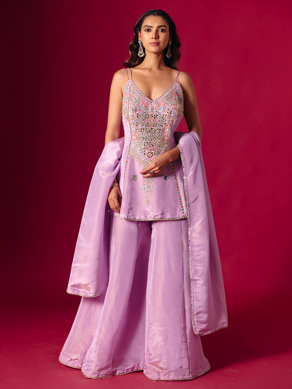 Lavender Silk Mirror And Gota Work Palazzo Suit