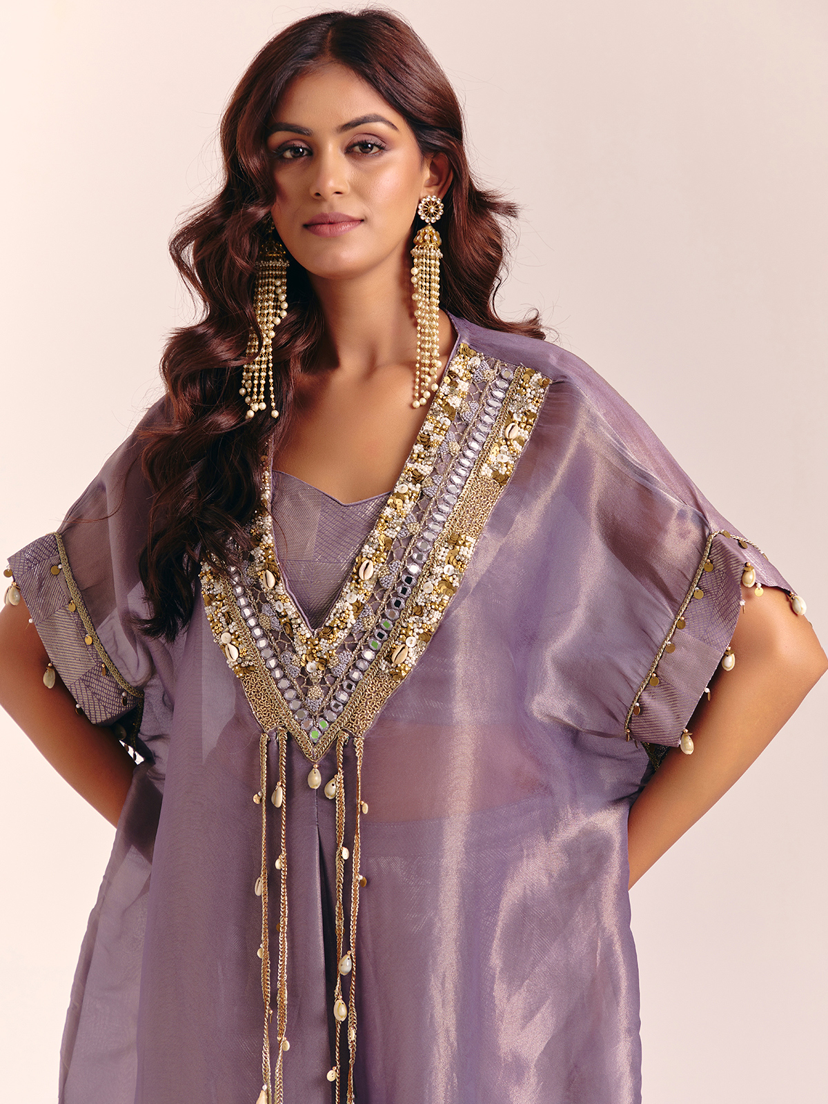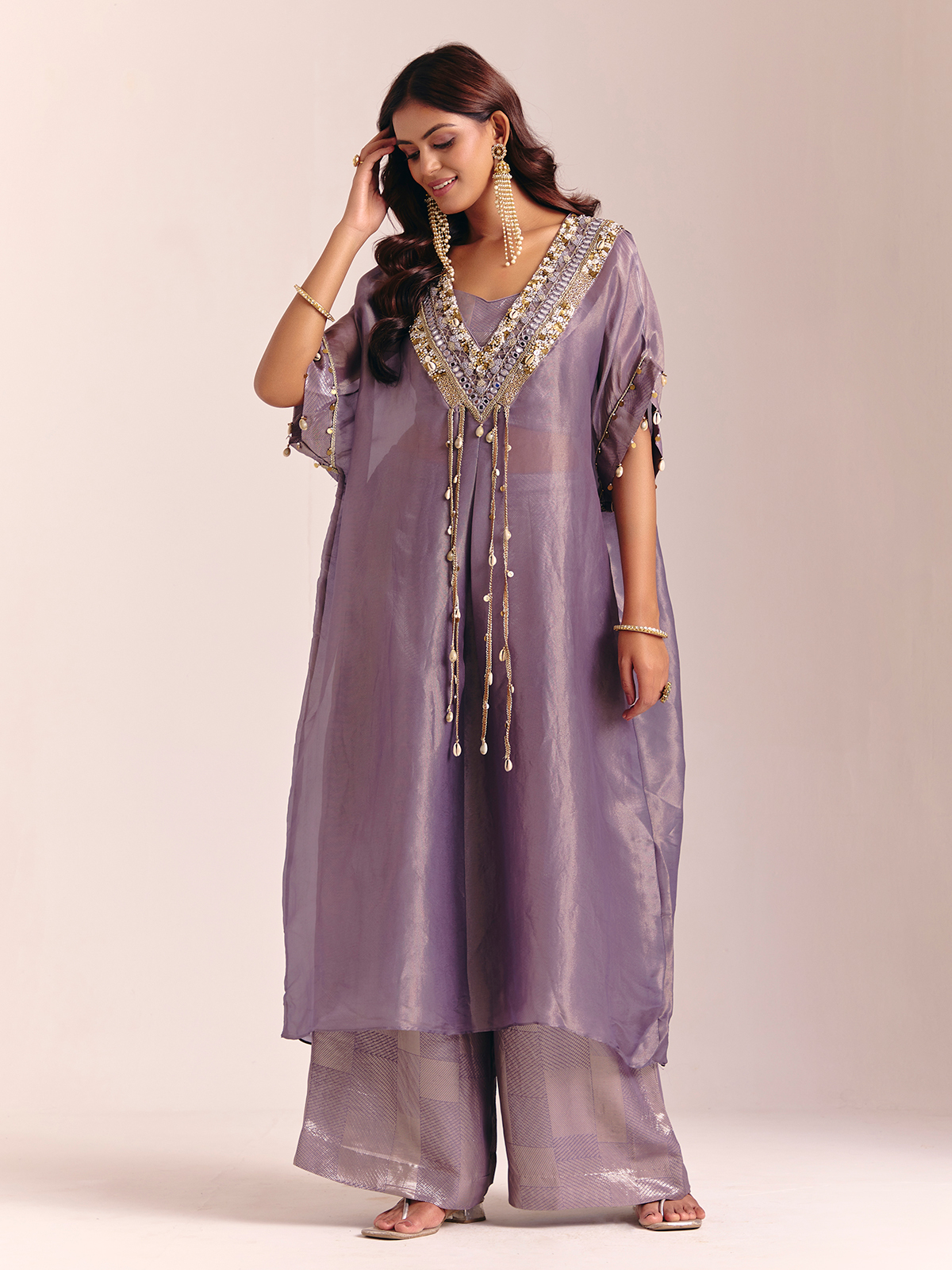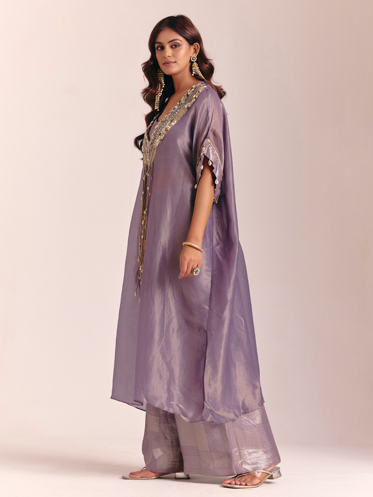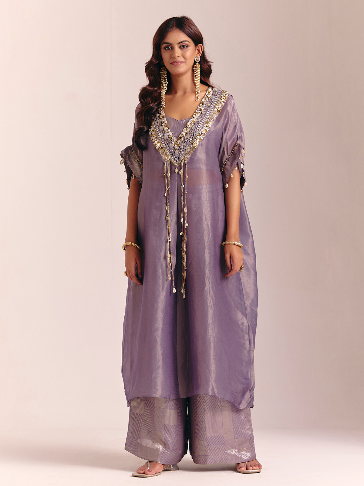 Lavender Tissue Silk Kaftan Style Palazzo Suit