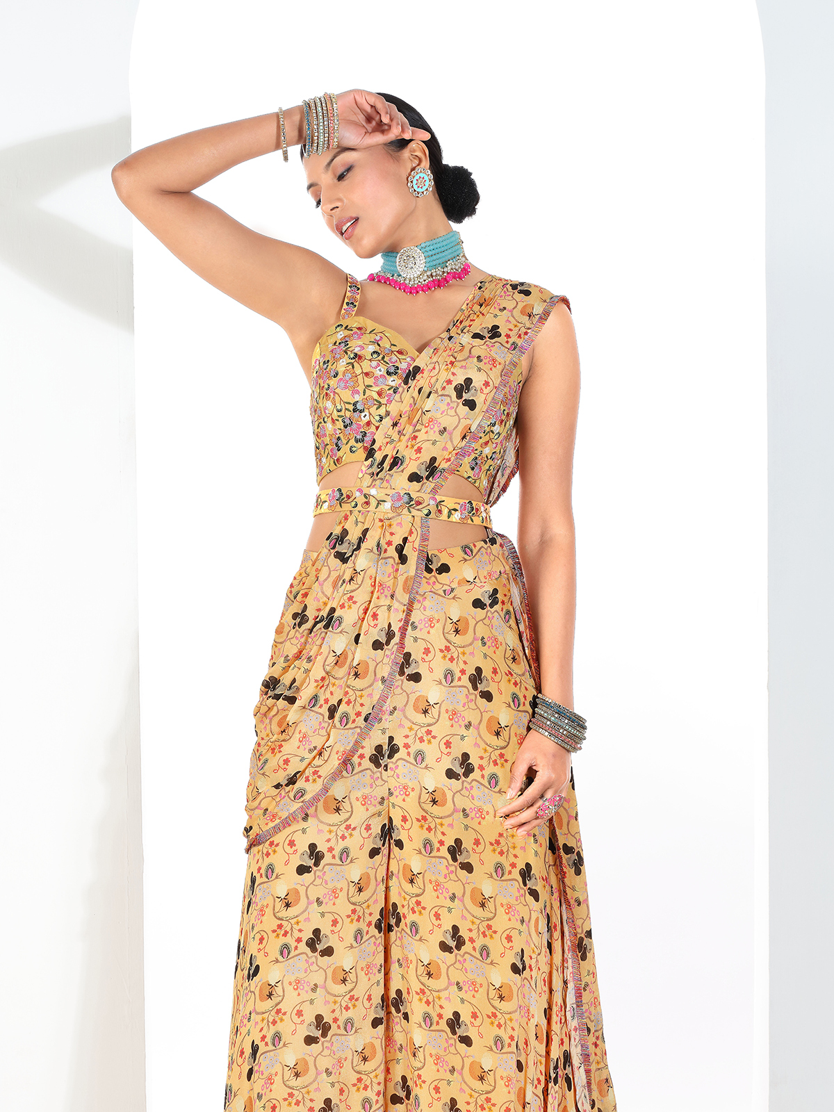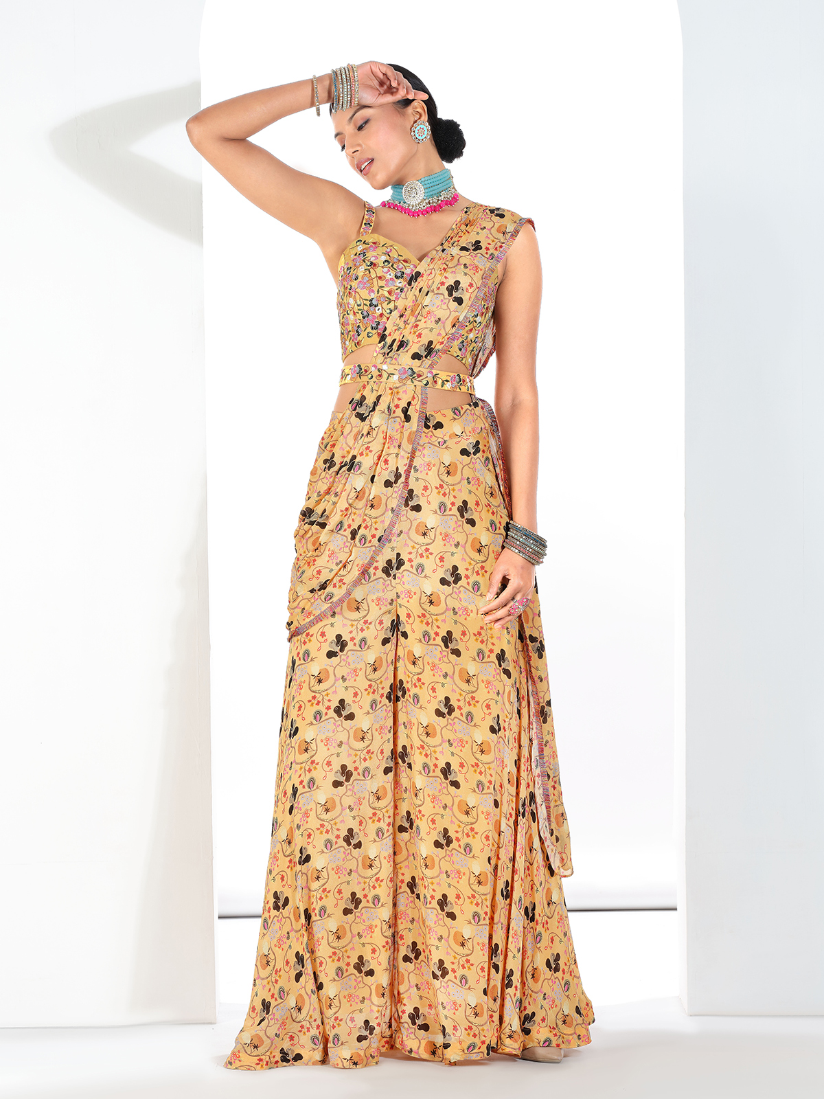 Light Yellow Silk Printed Palazzo Suit