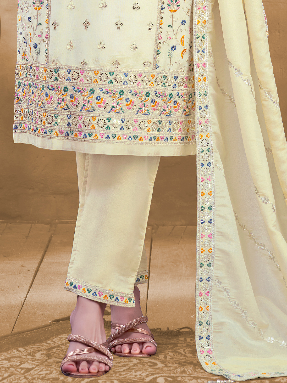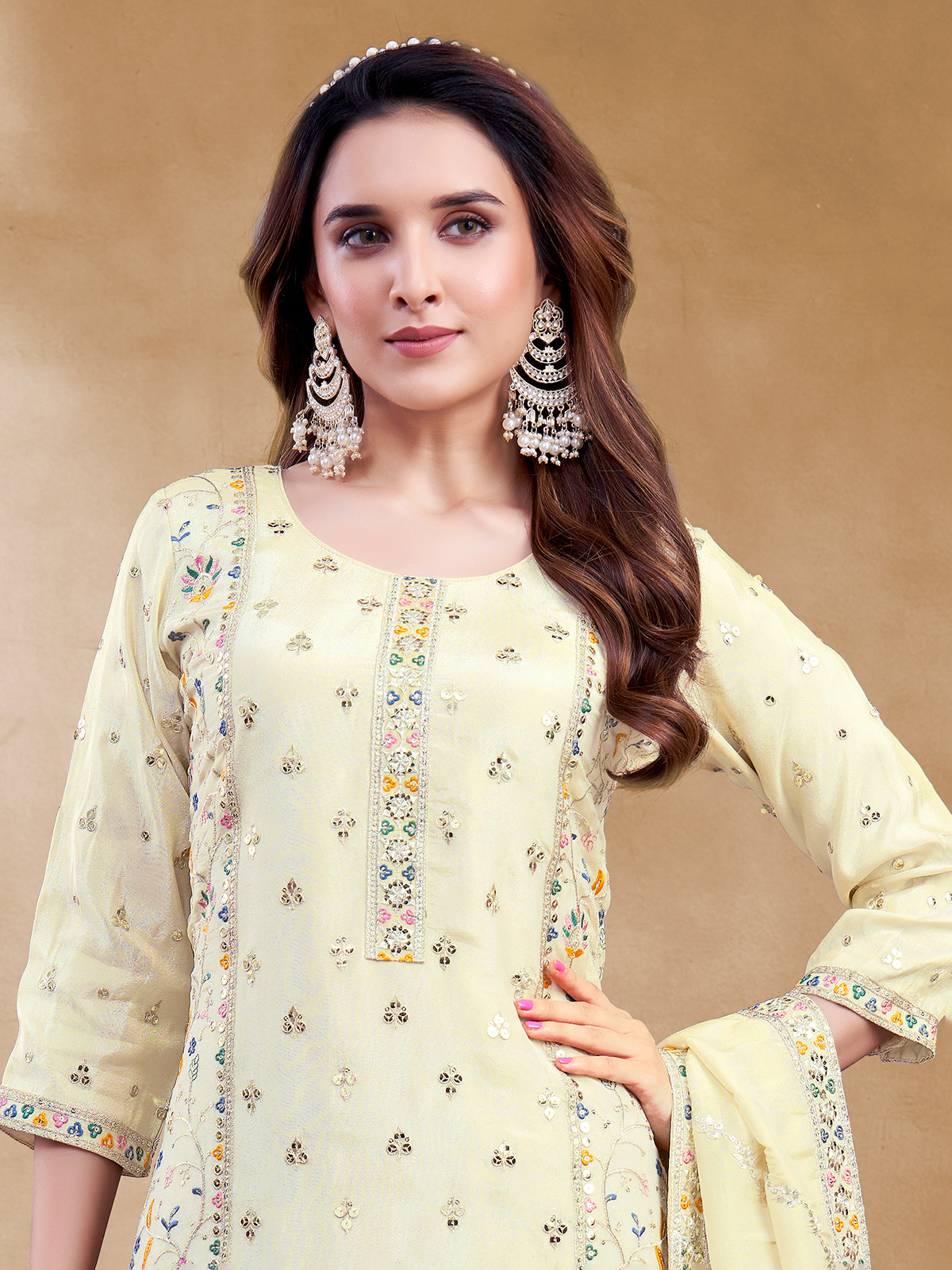 Light Yellow Silk Salwar Suit With Dupatta Set