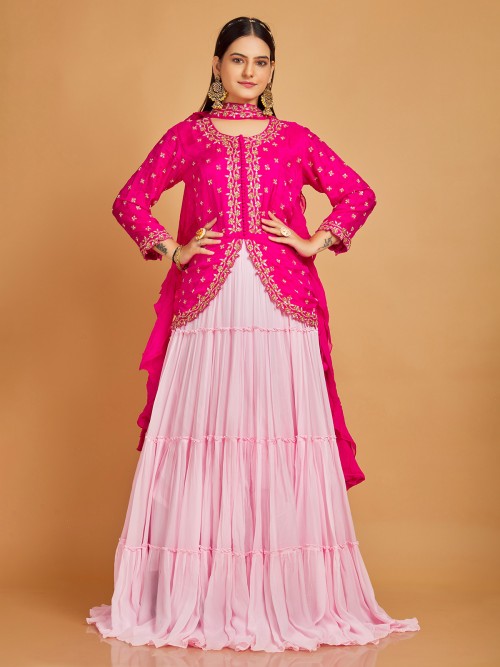 Magenta And Pink Floor Length Suit