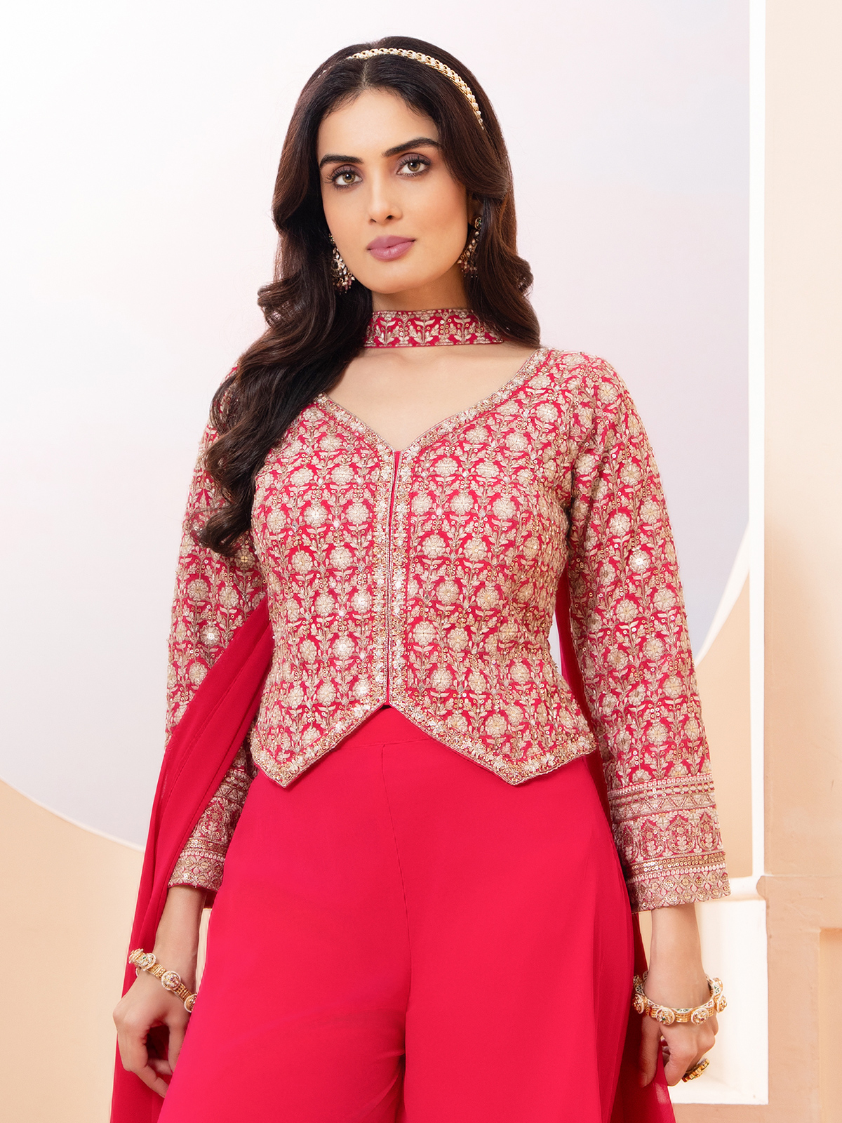 Magenta Georgette Pakistani Style Palazzo Suit