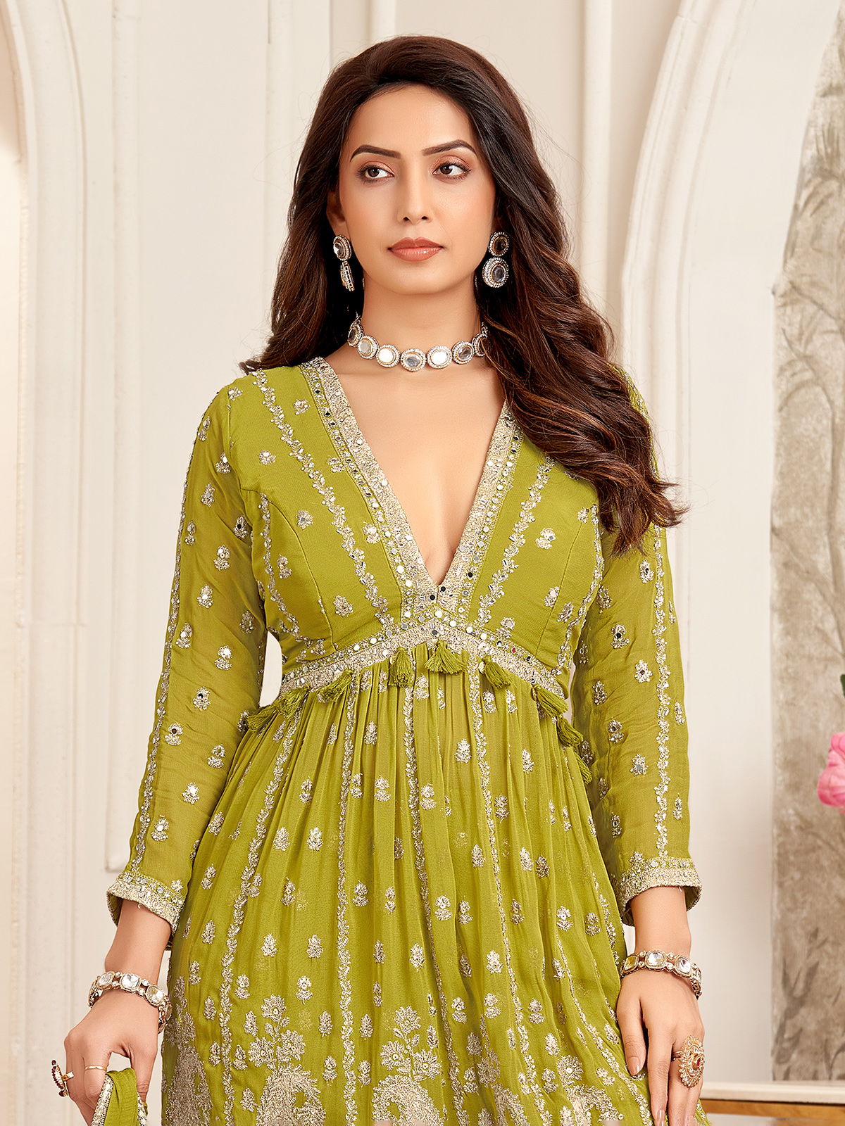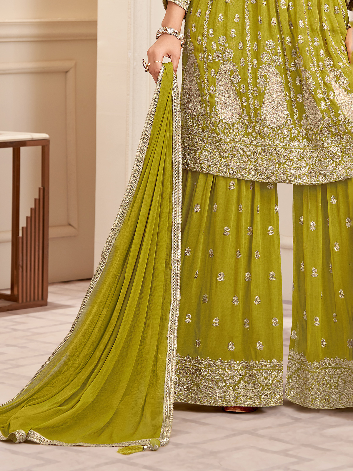 Mehendi Green Georgette Pakistani Palazzo Ensemble