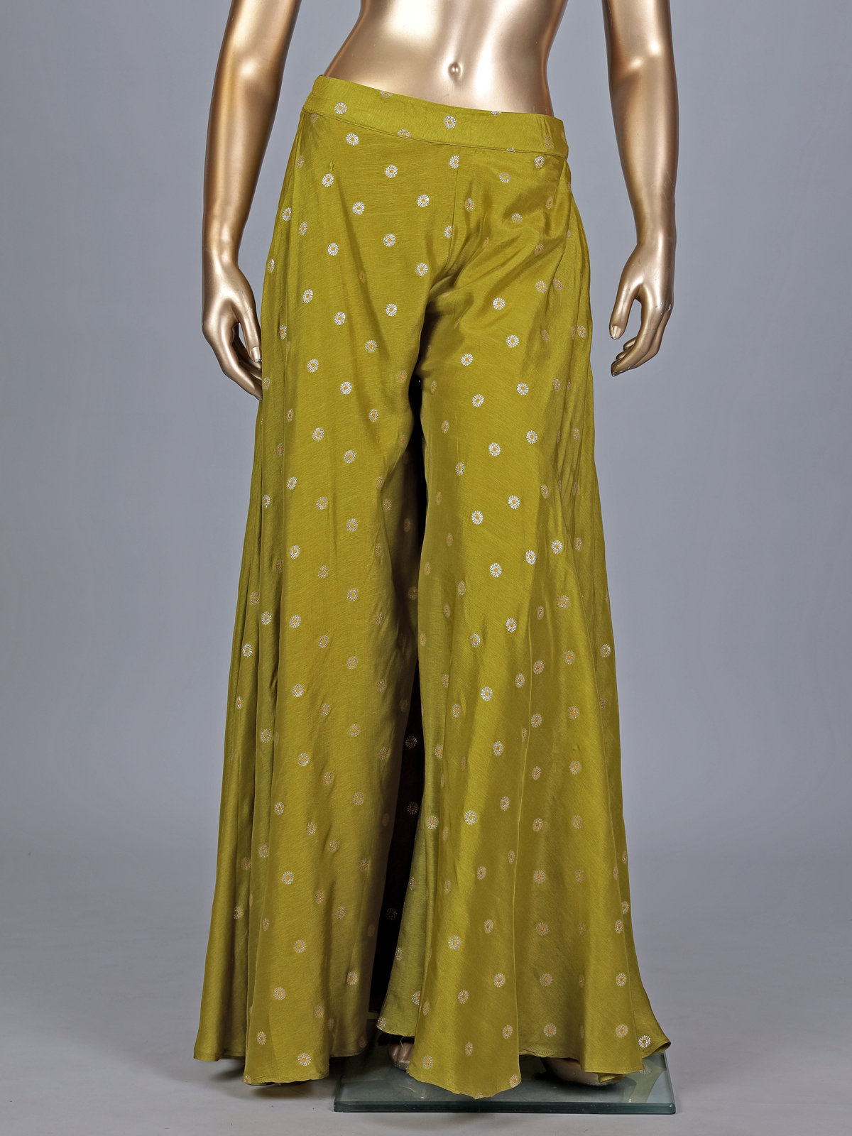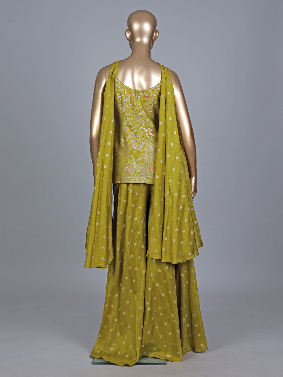 Mehendi Green Silk Sleeveless Palazzo Suit