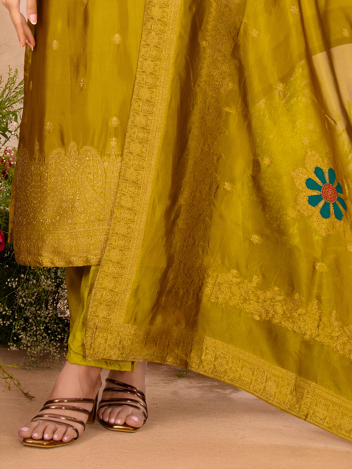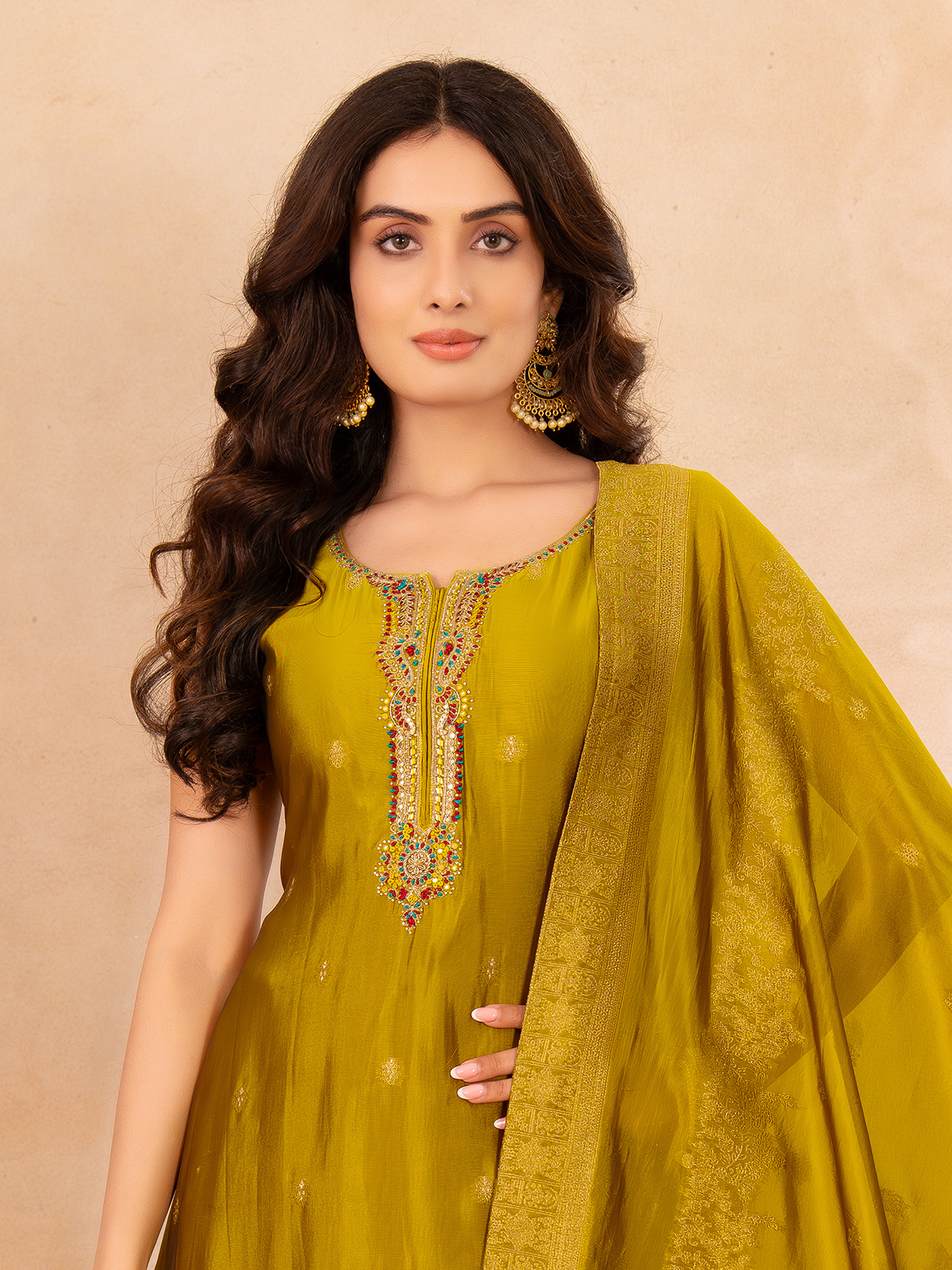 Mehendi Olive Embellished Ethnic Salwar Suit