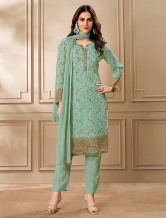 Mint Green Georgette Salwar Suit With Print