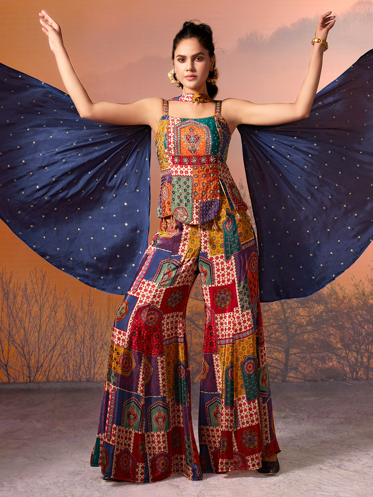 Multicolor Crepe Silk Embellished Palazzo Suit