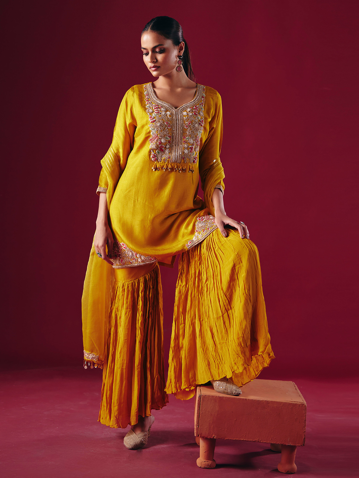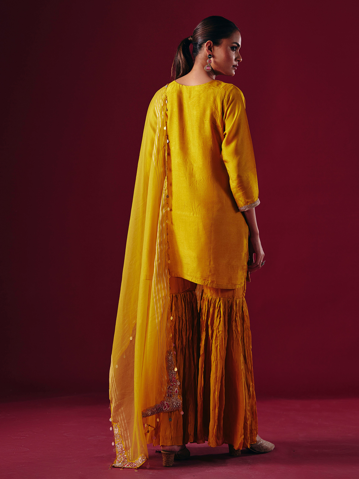 Mustard Yellow Silk Sharara Festive Suit