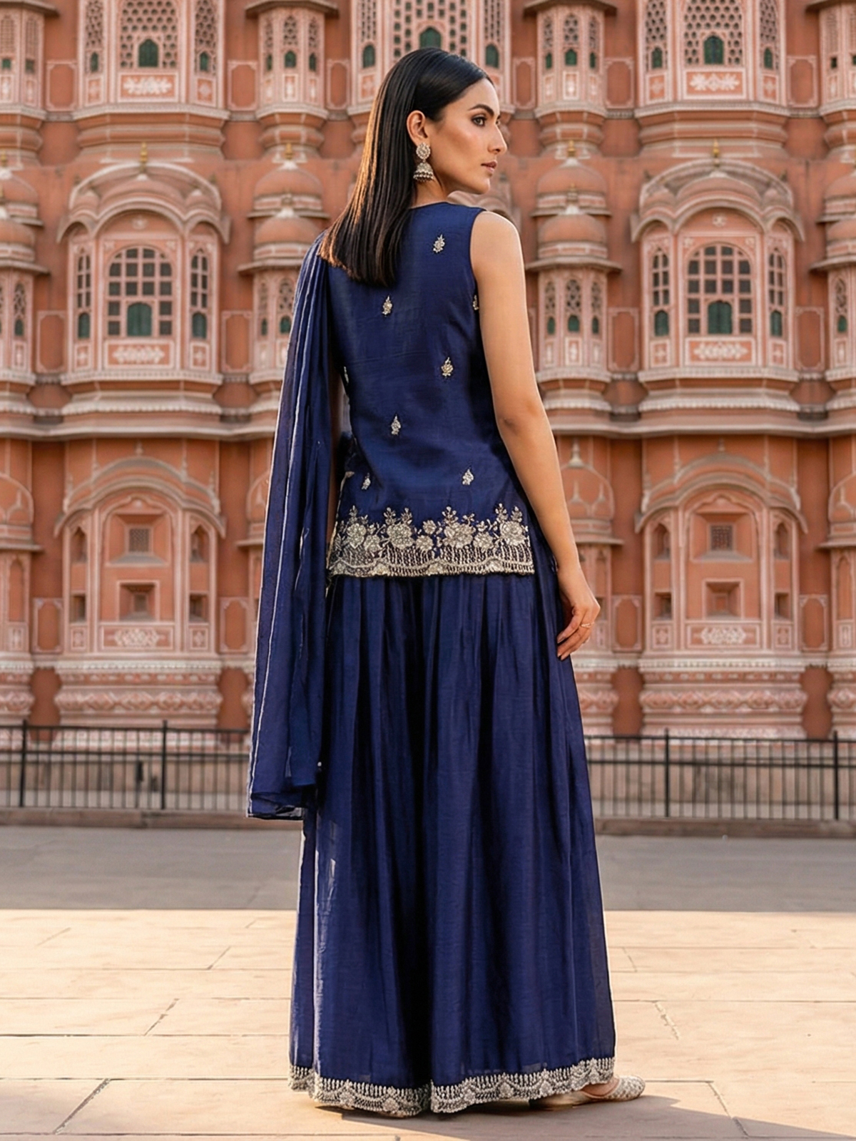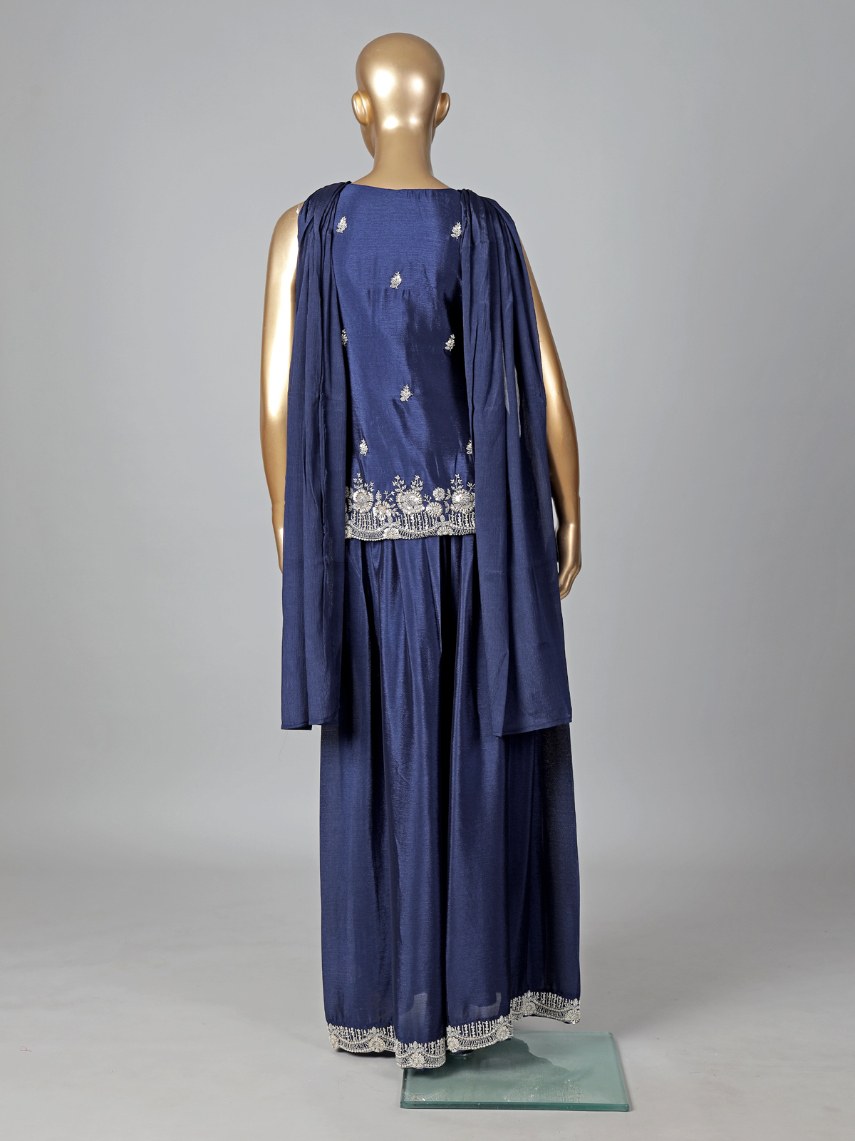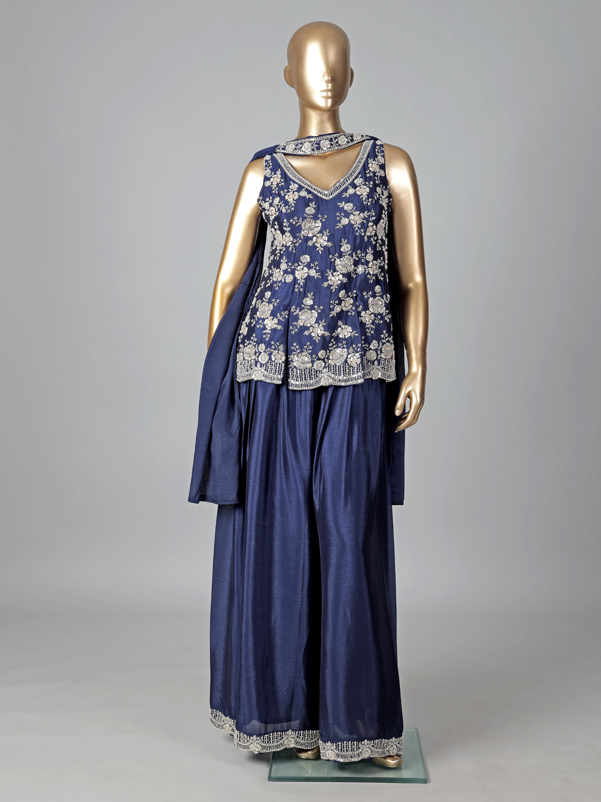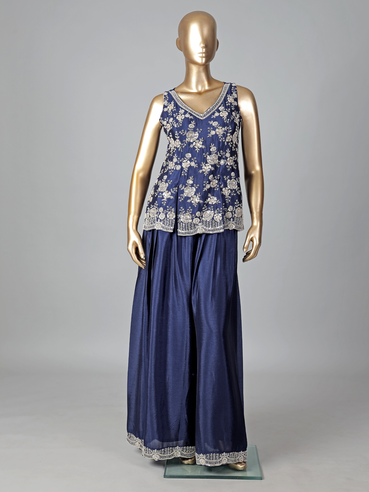 Navy Blue Silk Palazzo Suit Elegant Festive Style
