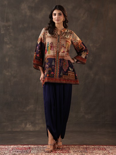 Navy Crepe Silk Printed Dhoti Style Festive Suit