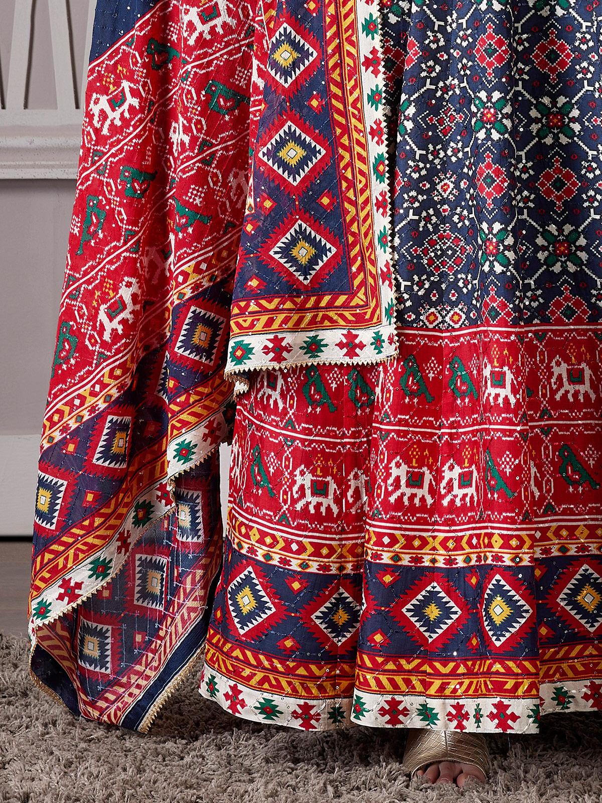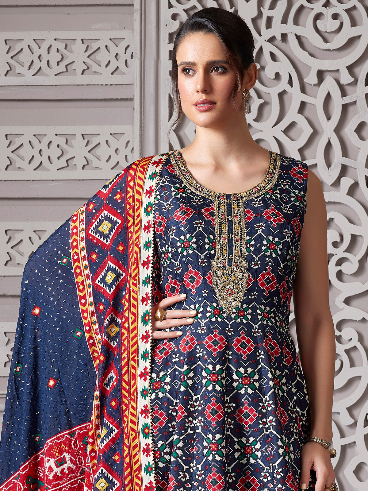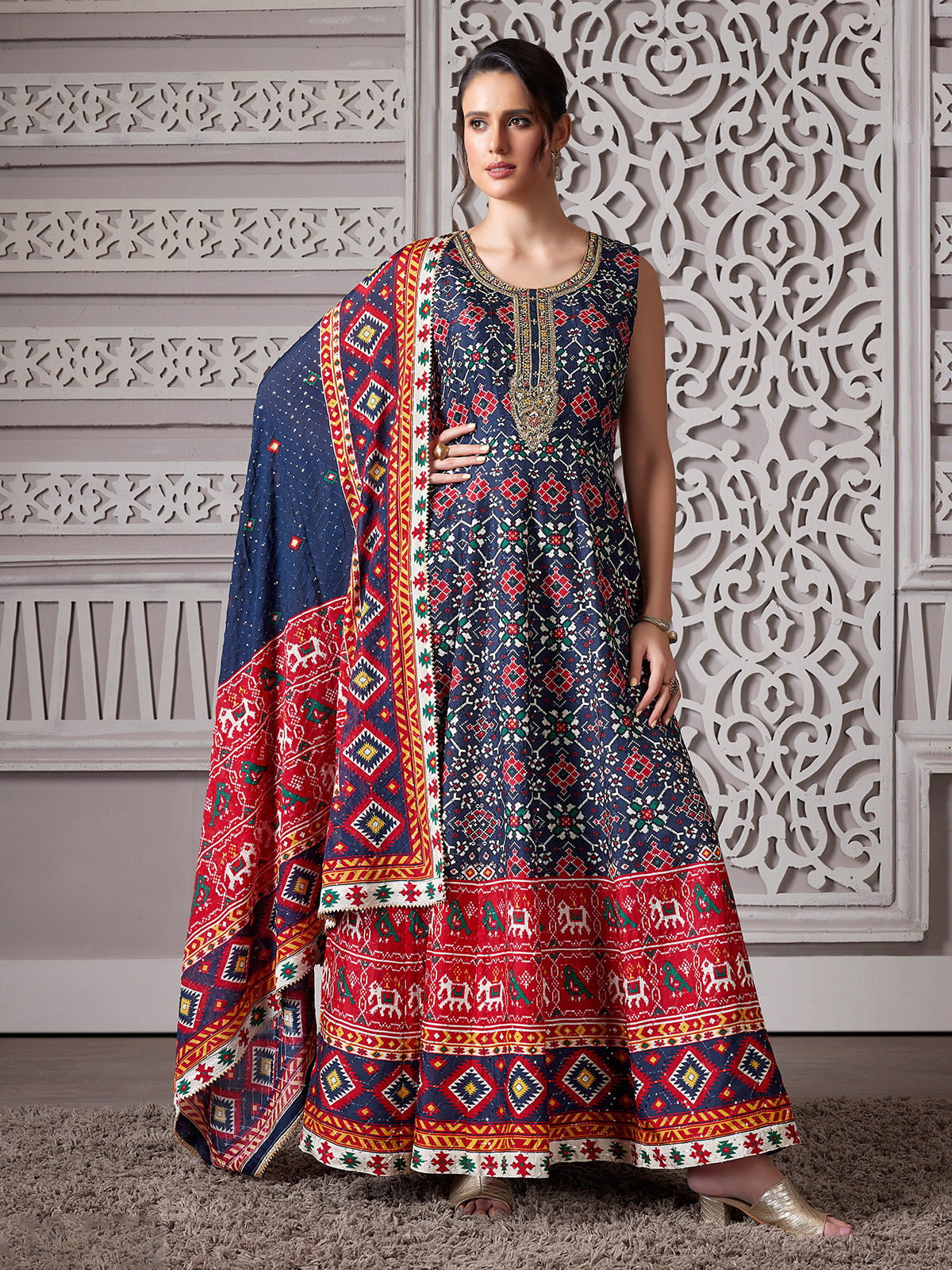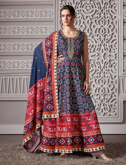 Navy Patola Printed Anarkali Style Suit