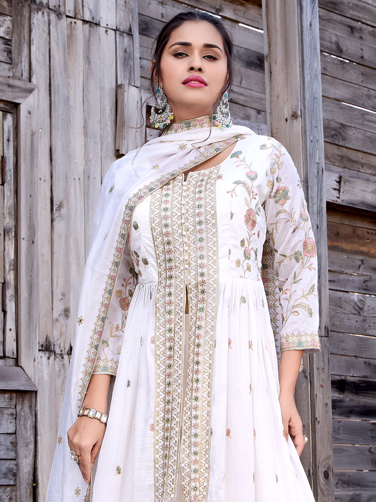 Off-white Silk Embroidered Palazzo Suit